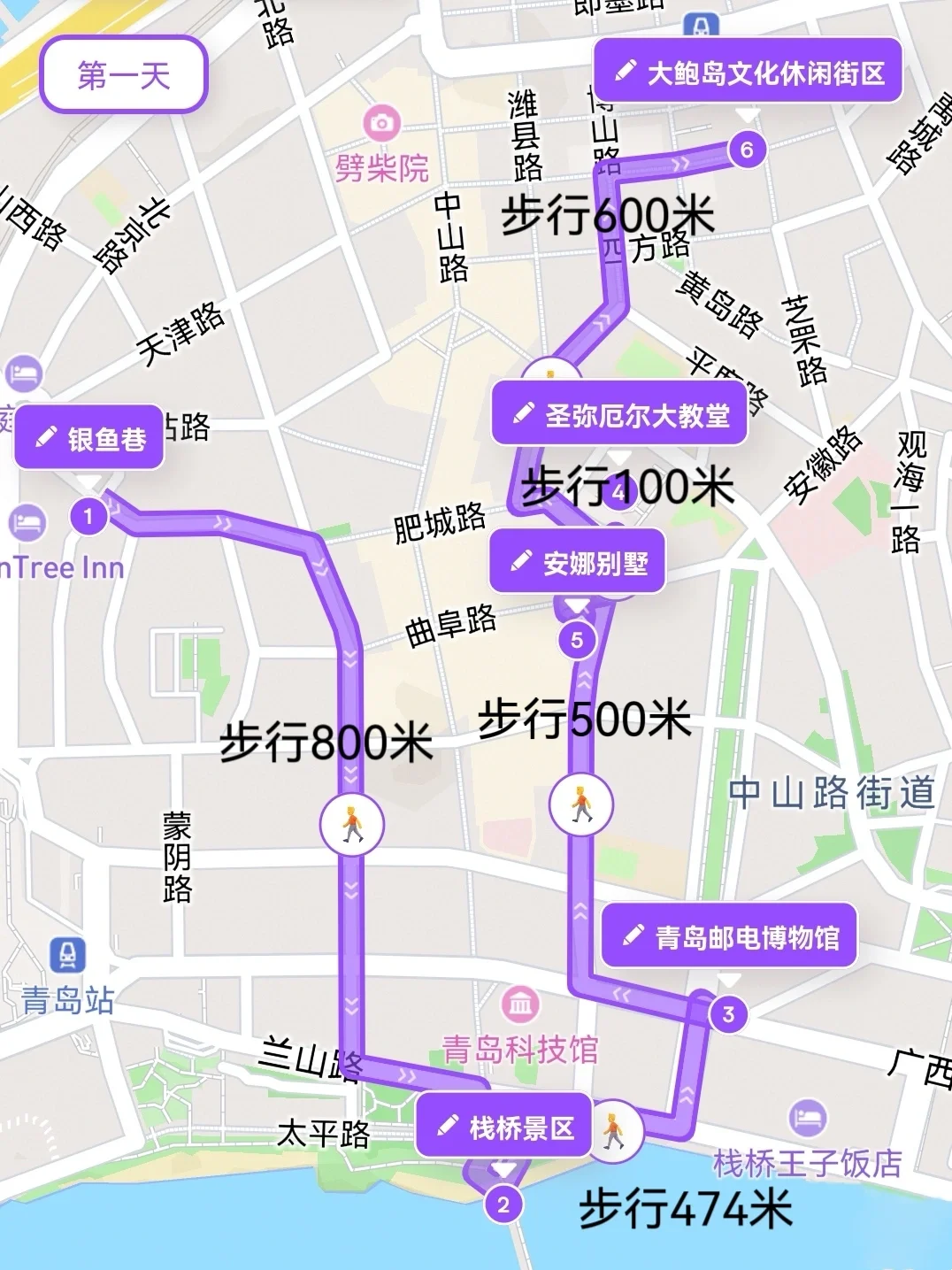 银鱼巷➠栈桥➠青岛邮电博物馆➠安娜别墅➠圣弥厄尔大教堂➠大鲍岛➠冬日爵士小镇