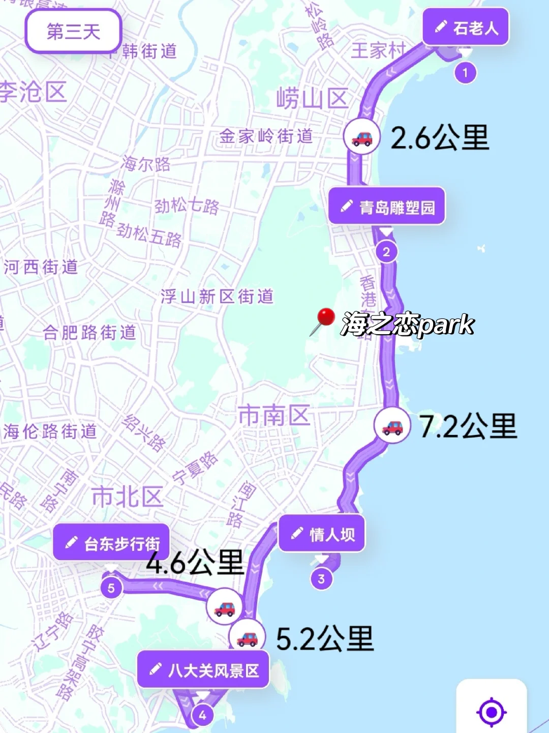 石老人看日出➠雕塑园➠情人坝➠八大关➠台东