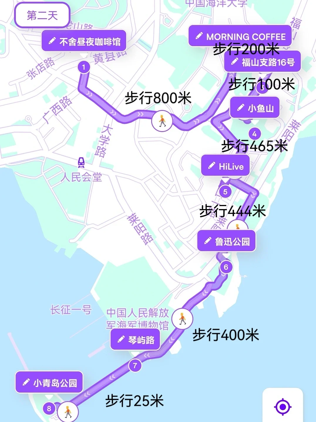 不舍昼夜➠MORNING COFFEE➠彩虹阶梯➠福山支路16号➠小鱼山➠hilive➠鲁迅公园➠琴屿路➠威尔德咖啡馆➠小青岛公园