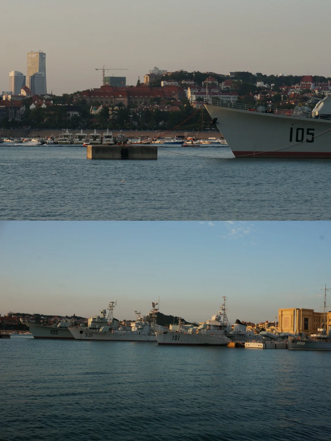 3⃣走在海堤上,记得拍对面的灯塔,后边海军博物馆的军舰,远眺栈桥👍