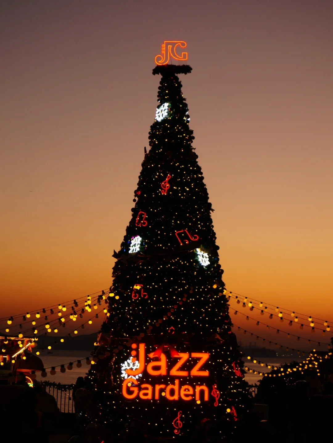 在爵士和巨型圣诞树旁感受醉美的海上日落🌅