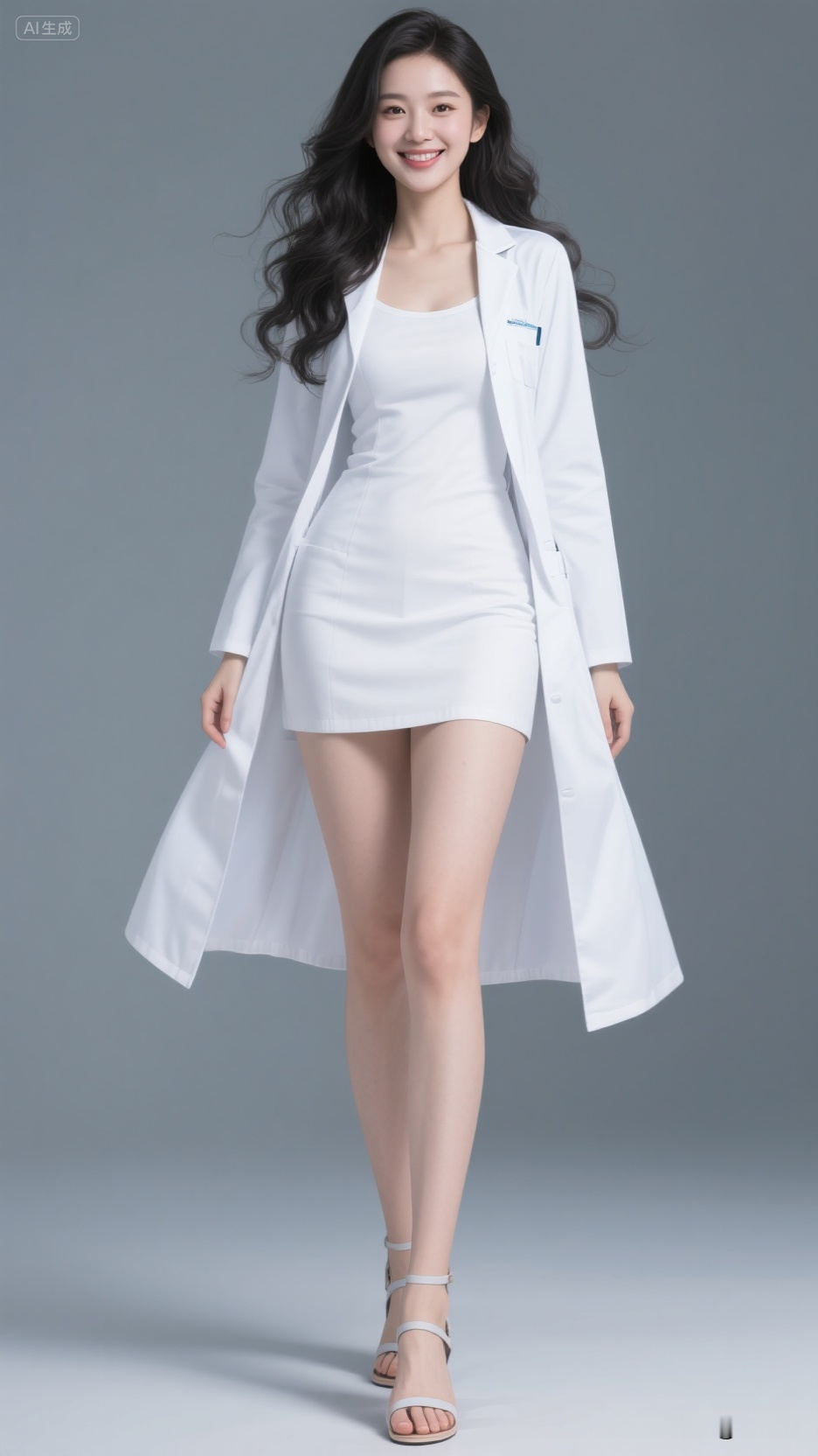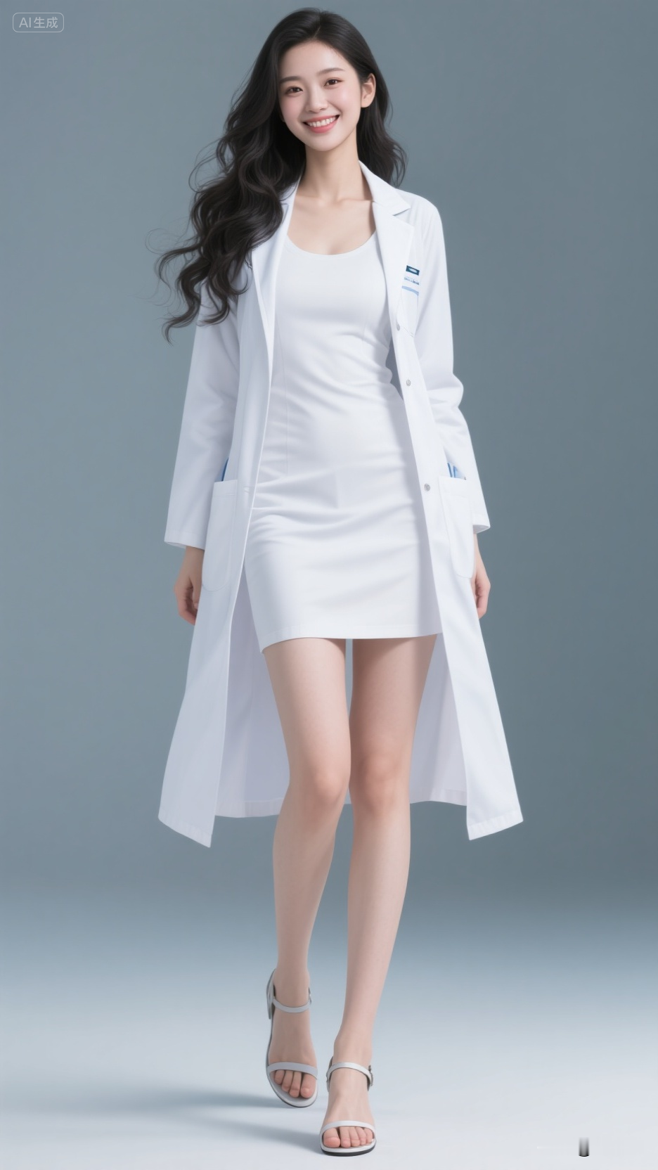 冷艳美女身穿白大褂,肌肤白晰身材完美