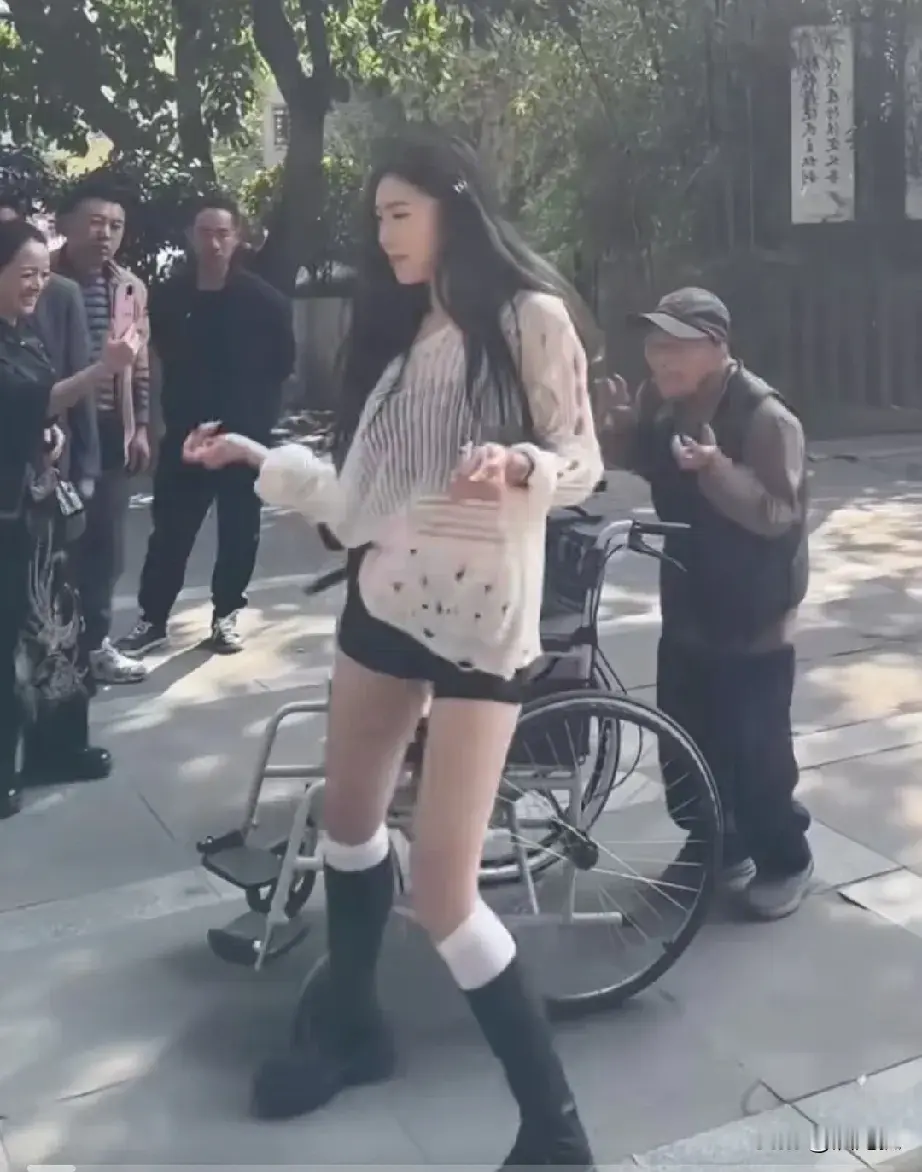 女子在公园劲歌热舞开直播,一个轮椅上大爷看到后,一下子激起了自己年轻时的舞王血脉,从轮椅上下来跟着美女随着音乐开始跳舞,公园里的人群看到后都纷纷驻足观看,对大爷的舞姿给予高度评价!