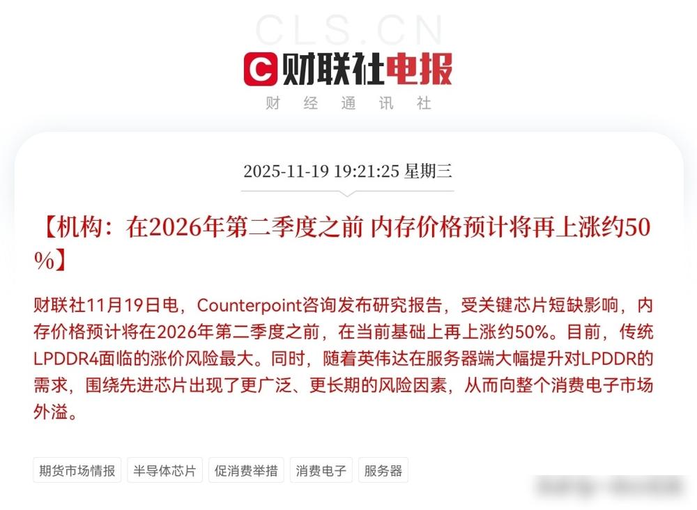 利好消息!利好消息! 存储芯片产业又来利好了! 预计明日存储芯片概念要大反攻了,存储芯片概念有望起飞了 这个预测看着挺激动人心。但市场真能这么简单就起飞吗?还得仔细看看。 Counterpoint那个报告说内存要涨价50%。听着是挺吓人的。可这种预测机构以前也常有。到底准不准,还得打个问号。毕竟离2026年还远着呢。 而且这利好好像只说了好的一面。内存涨价对上游企业是好事。可对买内存的手机电脑公司呢?他们的成本不就更高了。最后会不会转嫁给消费者?这波行情能不能持续,还真不好说。 看看现在的市场环境。全球芯片行业波动一直很大。前两年还闹过芯片荒,后来又不缺了。这种周期性变化太常见了。光靠一个远期预测就要满仓,风险有点大。 再说存储芯片这个概念。A股里相关公司不少。但真正有核心技术的能有几家?有的可能就是蹭个热点。等风头过了,股价怎么上去的还可能怎么下来。 股民们确实容易受这种消息影响。一看到“利好”就坐不住。但投资还是要冷静点。不能光听风就是雨。 说到底,投资最重要的是理性。看到利好消息,先别急着跟风。多看看背后的逻辑,多想想风险。这才是长久之道。 MCN双量进阶计划