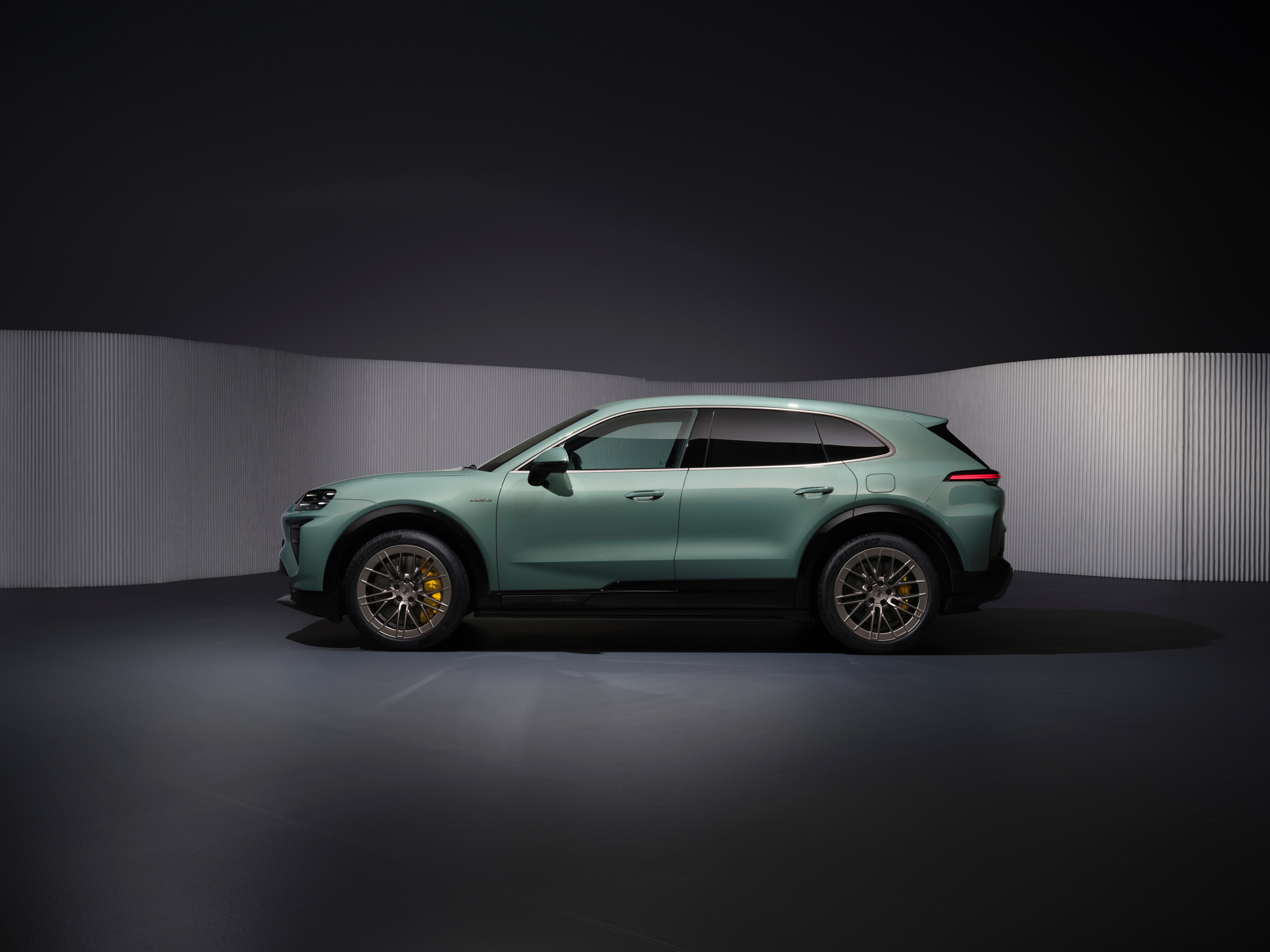 2026 Porsche Cayenne Turbo Electric 保时捷纯电卡宴发布,有Cayenne Electric和 Cayenne Turbo Electric两款,融合了超级跑车的性能和Formula E级别的能量回收系统,搭载全新开发的113度电池,800V架构,最大输出1139马力、1500牛米,0-60英里/小时加速仅需2.4秒,极速260km/h,16分钟充到80%的电量,还有无线充电功能,停在地板上就能充电。内饰的亮点是加热功能,不只座椅能加热,门把手门板等接触面都能加热。长宽高4,985/1,980/1,674毫米,轴距3,023毫米,尺寸提升很大。分辨率:5000