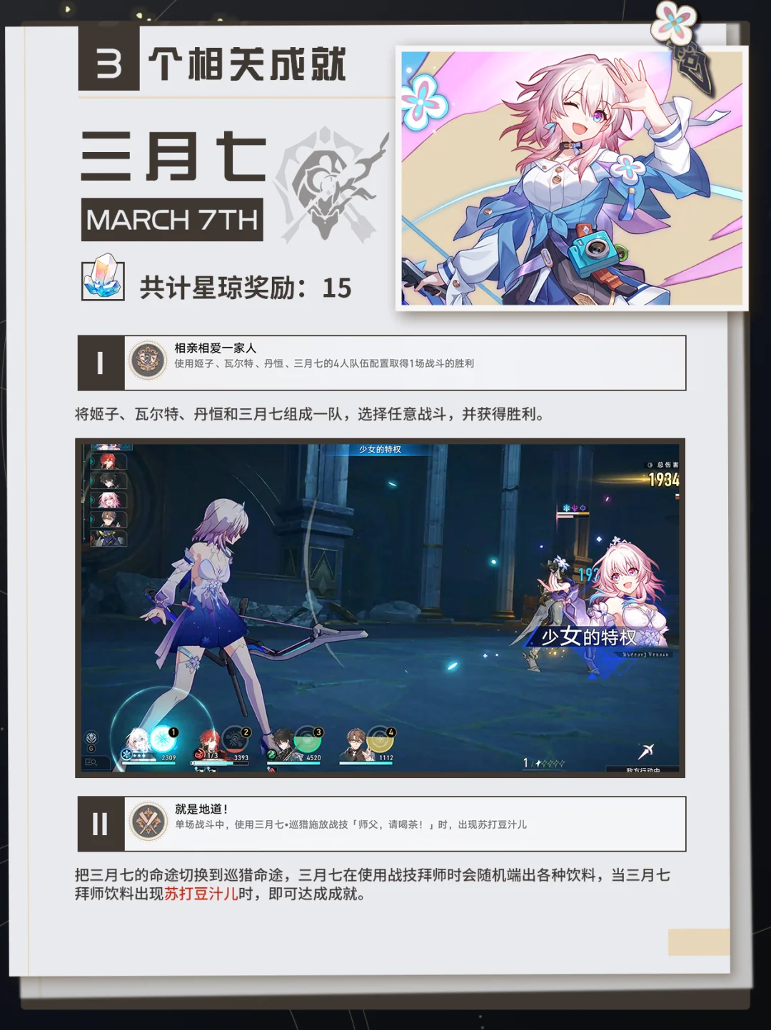使用姬子、瓦尔特、丹恒、三月七的4人队伍配置取得1场战斗的胜利
