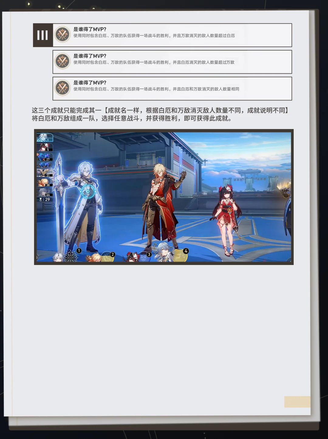 使用同时包含白厄、万敌的队伍获得一场战斗的胜利,并且万敌消灭的敌人数量超过白厄