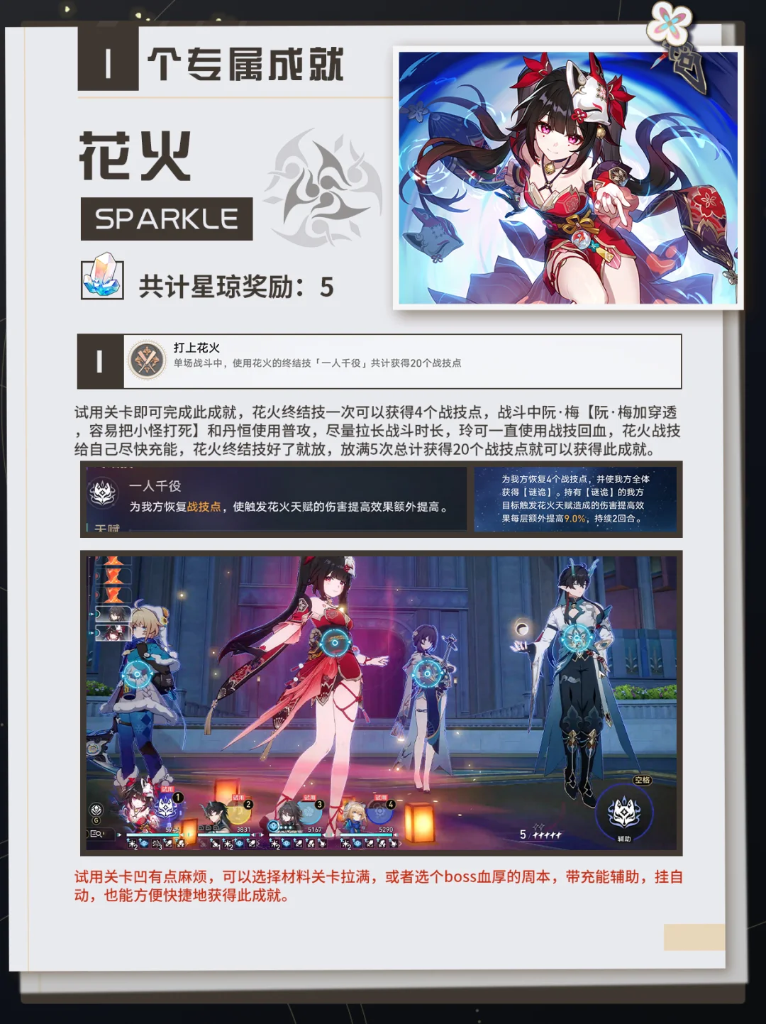 单场战斗中,使用花火的终结技「一人干役」共计获得20个战技点