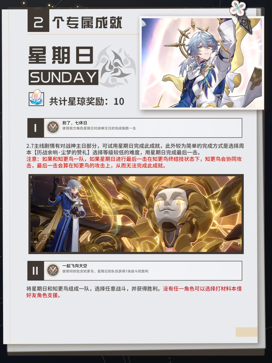 使用同时包含知更鸟、星期日的队伍获得1场战斗的胜利
