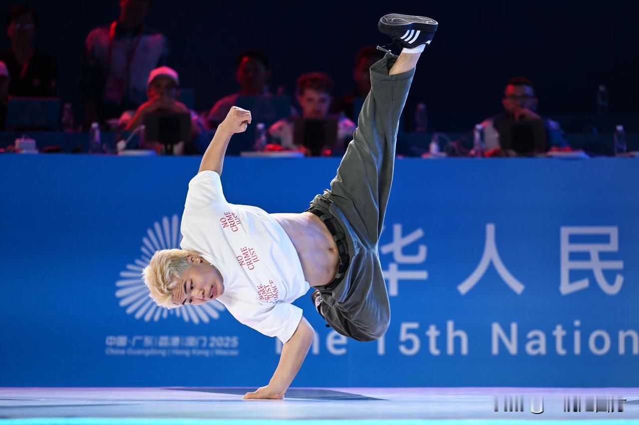 第十五届全运会霹雳舞项目是压轴进行的男子决赛,20岁的湖北小将王瑞苗力压两位奥运选手夺冠,他先在半决赛战胜上海的奥运选手商小宇,金牌战中,又以一套高难度的力量技巧动作战胜了另一位参加了巴黎奥运会的江苏名将亓祥宇,摘得金牌,商小宇获得铜牌。