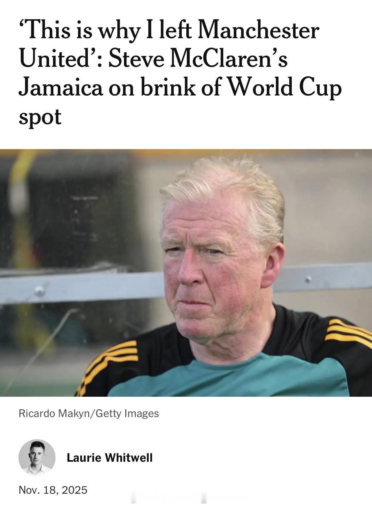 在一个可能无人关心的角落:随着牙买加战平库拉索无缘直接晋级,牙买加主帅,雨中大花伞麦克拉伦辞职,结束了1年3个月的短暂执教生涯。牙买加阵中有好几位英超球员,包括布伦特福德后防双子星皮诺克和里科·亨利(但他枯坐替补席90分钟),还有英超老兵霍尔盖特。不过牙买加确实运气也不好,之前首发主力中锋安东尼奥现在车祸复出后无球可踢,身价最高的贝利在最近两个国家队比赛日都因伤缺席…但有趣的是,麦克拉伦在牙买加的前任是带领爱尔兰国家队神奇逆转的哈尔格里姆松。而麦克拉伦在执教牙买加之前,是滕哈赫在曼联的副手…一天前,他在TA接受采访,还大谈“这就是我离开曼联的原因”