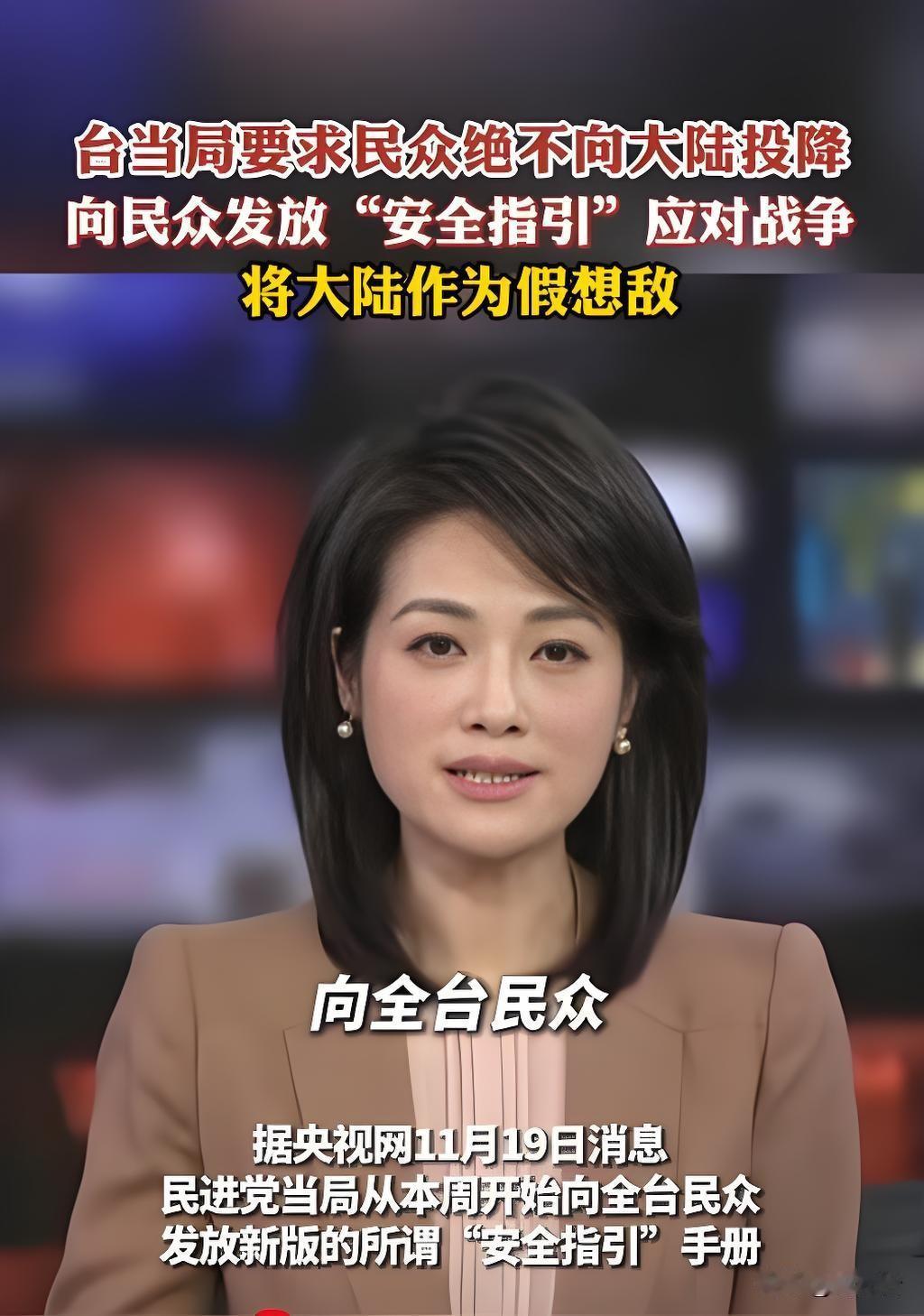 🤬 离谱!台当局发1100万本“战争手册”,逼民众喊“绝不投降”?把大陆当假想敌的算盘太精 全台家庭最近都在等一个“特殊包裹”——民进党当局赶印的1100万本《当危机来临时:台湾全民安全指引》,本周起正分批投递,号称“每户一册”,明年1月5日前要送遍983万户家庭。但翻开这本“安全指引”,满页都是对大陆的恶意渲染,连“绝不向大陆投降”都成了强制要求,这哪里是避险指南,分明是挑事檄文! ⚠️ 手册里的“战争剧本”有多荒谬?海缆瘫痪、无人机“侵犯”、“敌军”登检……这些刻意制造的紧张场景,全部把矛头对准大陆。更荒唐的是,手册明确写着“任何台湾投降或战败的消息都是假信息”,逼着民众刻牢“绝不投降”的信念。台防务部门甚至还想加印赖清德签名“提升信赖感”,被国民党“立委”马文君讽刺:“不如直接题诗,信赖感更足”。 这笔账更让人火大!印制1100万本手册花了6447万新台币,其中4279万居然动用了原本用于灾难救助的“第二预备金”。为了规避立法机构监督,台当局特意把金额压在5000万以下“先斩后奏”,国民党“立委”王鸿薇怒批:“救急的钱拿来搞政治宣传,良心不会痛吗?” 民众早就看穿了这套把戏。第一版手册线上下载量仅1.6万次,加了赖清德签名后更是跌到93次。网友直接开怼:“幼稚到极点,拿来垫便当刚好”“把钱花在治水、民生上不好吗?”连岛内县长都直言,这本手册不是给安全感,是“制造恐慌的源头”。 💢 明眼人都清楚,临近选举,民进党是想靠“抗陆”戏码转移执政失能的焦点。台防务官员都坦言,手册核心是“维持当局运作”,根本不是服务民众。大陆一直以和平统一为目标,可台当局却把两岸同胞的安危当赌注,把台湾民众当“台独”战车的人肉盾牌。 台湾民众要的从不是“绝不投降”的口号,而是治水、加薪、住房这些实打实的安全感;两岸需要的也不是对立恐慌,而是同胞间的守望相助。民进党这场政治秀,终究会被民意戳穿。 台当局别拿民众当筹码 两岸和平才是真安全 荒谬的战争手册