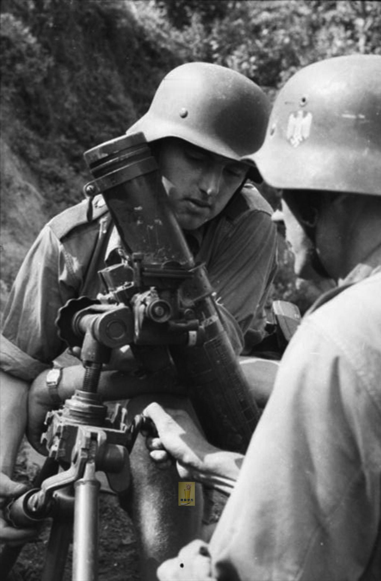 [呲牙] 这两张照片可能没什么特别出彩的地方,不过摄影师却是非常有分量的——1940年,法国。德军向法军阵地发起进攻,此时德军 s.Gr.W 34型81毫米迫击炮小组正准备为步兵提供火力支援。 大家注意:照片拍摄者为第7装甲师师长埃尔温·隆美尔少将。 s.Gr.W 34型81毫米迫击炮(参见图3~4)是德军在二战中使用的标准营属中口径迫击炮,射程可达2400米,射速为15-25发/分钟,是连排级步兵重要的间接火力支援武器。 [呲牙] 隆美尔(Johannes Erwin Eugen Rommel,参见图5)当时作为第7装甲师的师长,经常亲临前线指挥并亲自拍摄作战场景,他是德军高级将领中出名的摄影爱好者。