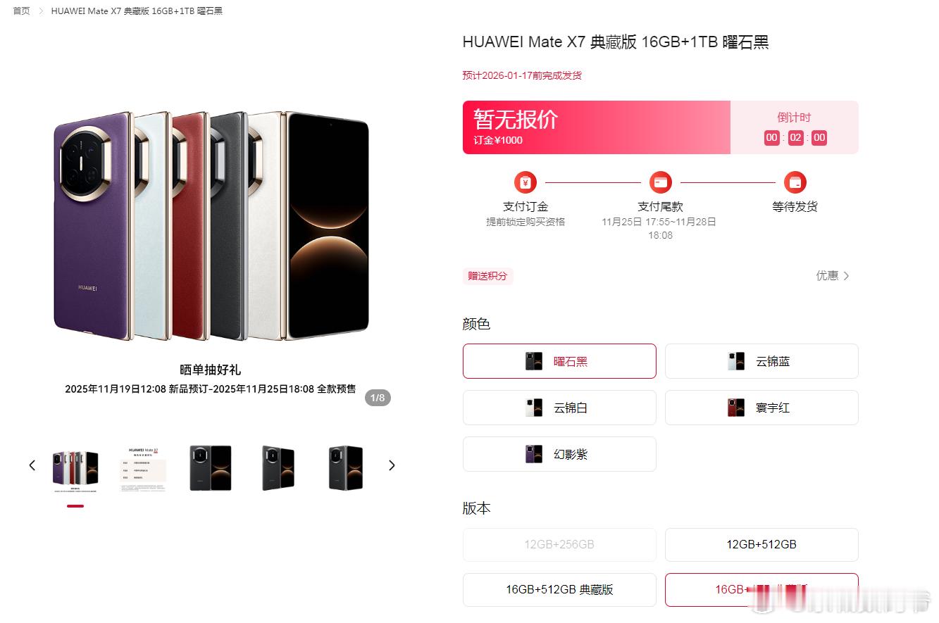 华为Mate80全系开启预定,外观和配色都放出来了,四个版本:Mate80