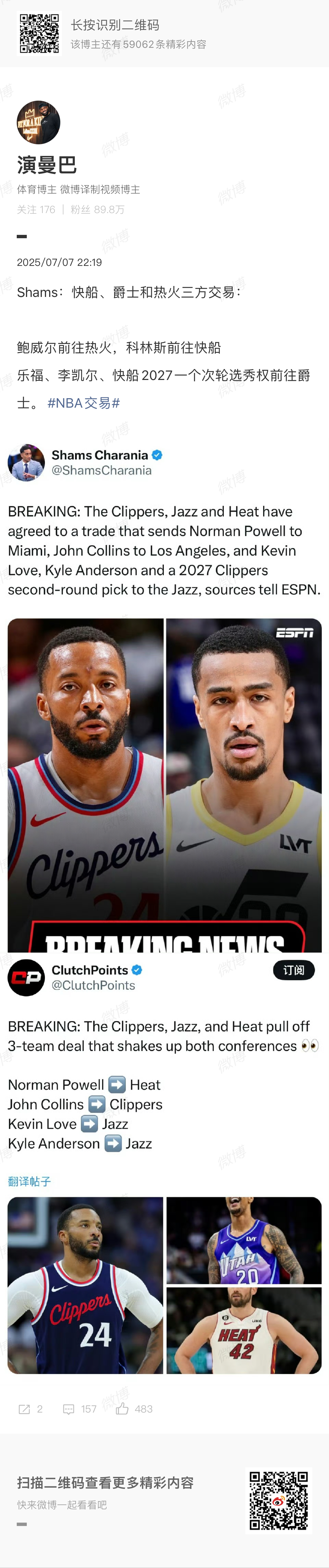 这么香的鲍威尔换了科林斯,起码有得分产量也有效率。