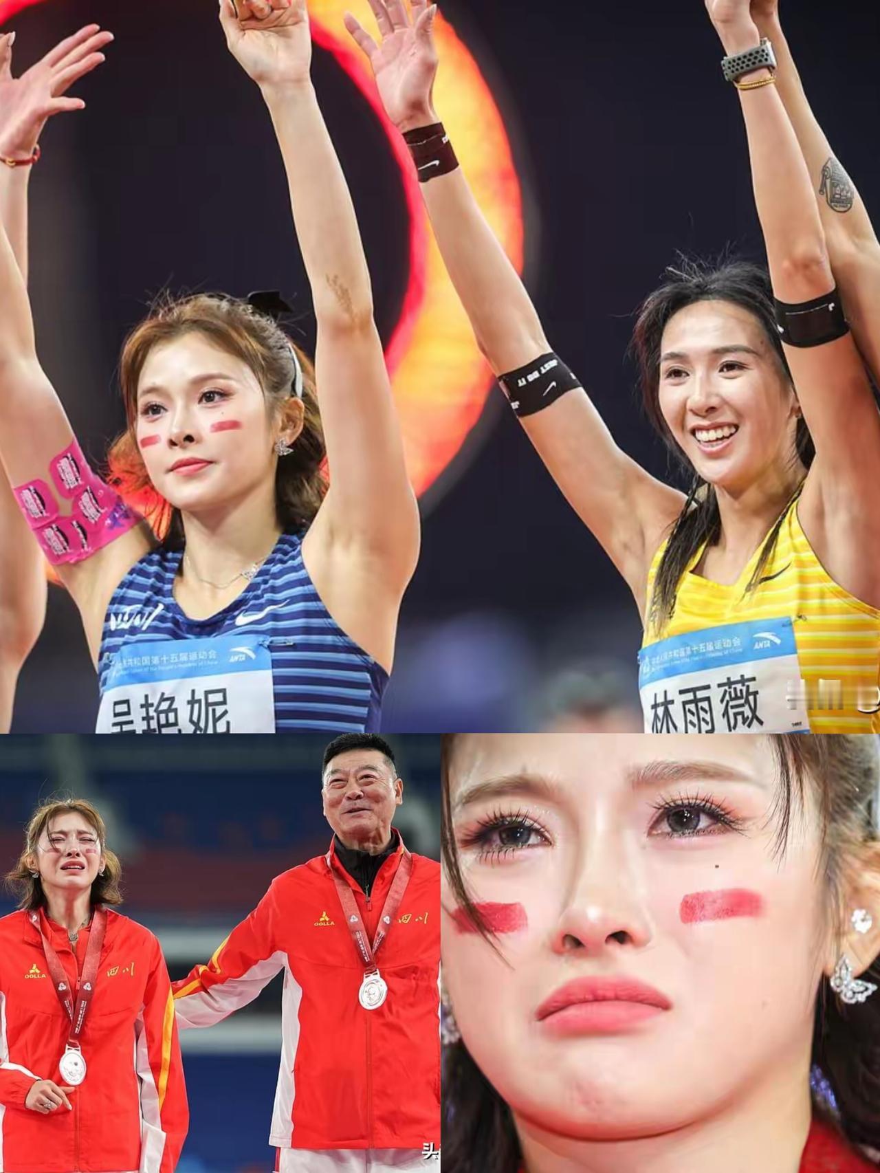 看完全运会女子100米栏决赛的合影,心里堵得慌!8个选手站成一排,7张脸笑成花,手拉手互相道贺,唯有吴艳妮僵在中间,悬着的手无处安放,挤了半天都没挤出笑容,最后在领奖台背过身哭得浑身发抖。 别觉得她矫情,12秒85的赛季最佳,明明是低温下拼出来的顶尖成绩,却成了自己口中的"0分"。全场都围着冠军欢呼,教练递的外套她忘了接,好友没进决赛没人递安慰,只有妈妈能接住她所有的委屈和疲惫。 竞技体育的残酷从不是输输赢赢,而是拼尽全力后,连个分享遗憾的人都没有。那些光鲜的笑容背后,藏着多少无人知晓的孤独,大概只有同样摔过跟头的人才能懂。 你心疼这个拼到极致的姑娘吗?如果是你,会怎么安慰落寞的她?评论区聊聊~