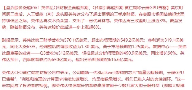 靴子落地!全球AI科技龙头英伟达财报落地,大超预期,盘后股价大涨超6%,美股纳指期货大涨近2%!英伟达财报回击AI泡沫,估值担忧!科技股强势上攻。今天在A股变盘窗口,对A股科技股,AI科技情绪也是提振,AI科技硬件方向,中际旭创,新易盛,工业富联方向,昨天异动,资金潜伏业绩超预期,超预期,观察是兑现还是高举高打。相比AI硬件,AI软件应用方向,周二大涨,周三分歧调整,今天周四轮动修复预期,AI软件应用,谷歌刺激更大,谷歌大涨股价持续刷新新高。另外AI科技直接相关的半导体,AI芯片也是关键,最近半导体活跃,存储芯片,光刻机更强,今天观察AI芯片分支。另外机器人,金融科技方向也是重点,金融科技,科技属性,叠加券商并购重组,比券商表现或更强。总之,今天两个重磅消息,一是券商股,二是科技股,正好符合当前市场高低切轮动逻辑,交易重点,市场核心主线。