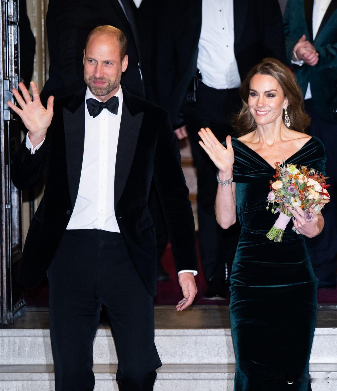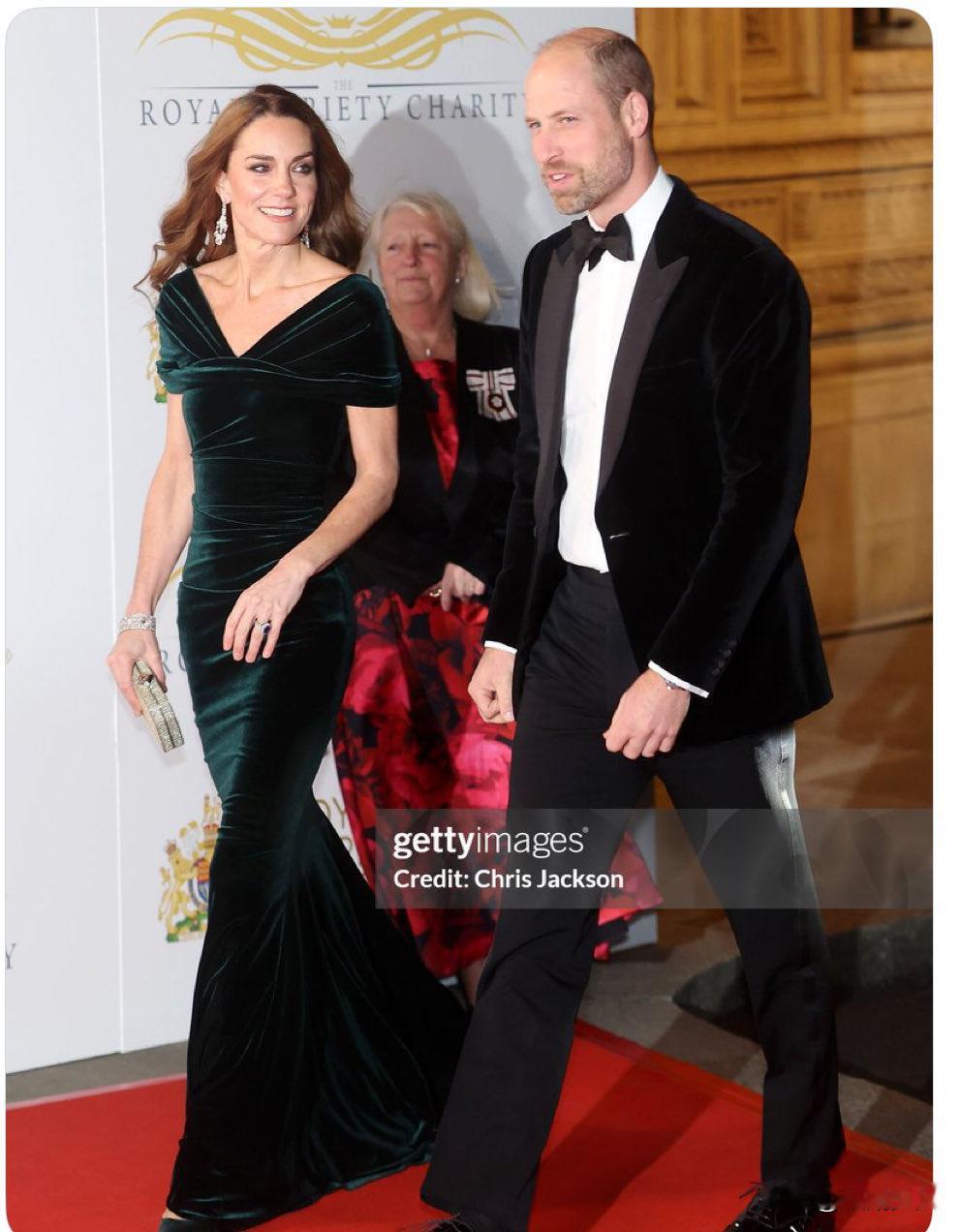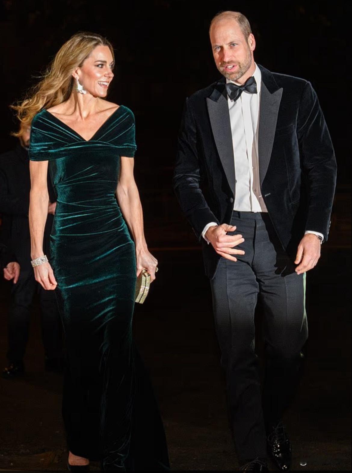 好久不见的穿礼服的凯特[心][心] 昨晚,威尔士亲王威廉王子和威尔士亲王妃凯特携手参加皇家演艺之夜。 凯特选择了一件深翡翠绿色的天鹅绒礼服,这套礼服如剪影般优雅地勾勒出凯特的身材轮廓。凯特的动作流畅而自信,威廉王子戴着黑色领结,帅气依旧。不过,最亮眼的还是凯特佩戴的那对历史悠久的吊灯耳环[大笑]。 恭喜凯特在远离聚光灯一段时间后,凯旋般地重返晚宴生活[大笑]