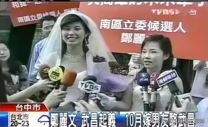 郑丽文当年的婚纱照!右边采访她的女记者是尹乃菁吗?!看着挺像!