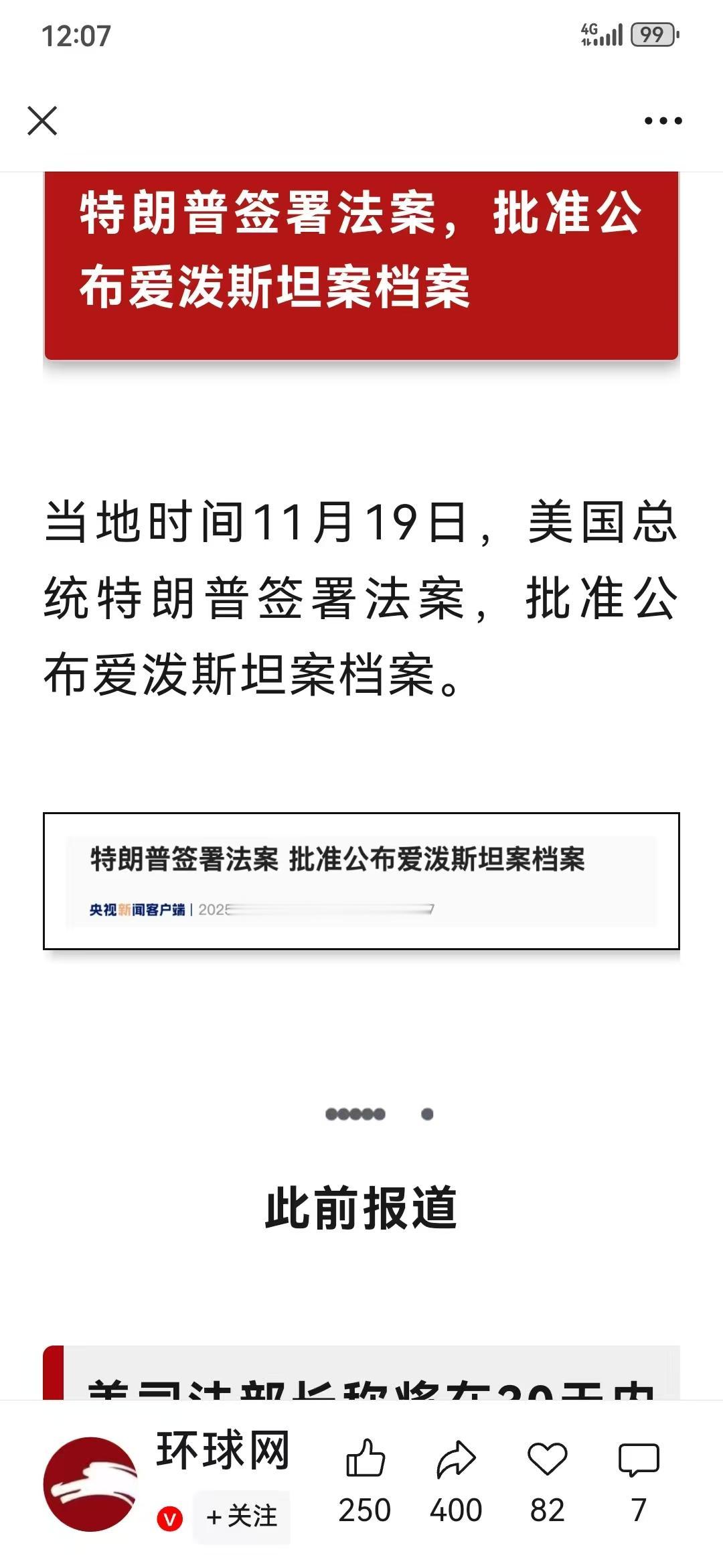 重磅!427票赞成、1票反对,特朗普无奈签署法案公布档案,特朗普拼命掩盖的秘密或大白于天下,很多美国政要人心惶惶,真正的危机开始诱发! 特朗普上台前威胁将公布爱泼斯坦名单,但是上任后却没有兑现承诺,一直在掩盖这个名单。期间,还传出了特朗普与爱波斯坦会面的消息,并且有相应的视频和图片公布出来。尽管特朗普通过特殊手段度过危机,但是这个问题显然成为了他自身的一个弱点。在美国各种危机全面爆发背景下,美国内部关于公布爱波斯坦名单的呼声也是不断高涨。 当地时间11月18日傍晚,美国国会众议院就《爱泼斯坦档案透明法案》进行表决。结果表决的结果是427票赞成,1票反对,所以这个法案获得压倒性支持通过。仅仅几个小时后,美国参议院根本没有进行辩论就直接一致通过这个法案。当地时间11月19日,美国总统特朗普签署法案,批准公布爱泼斯坦案档案。当地时间11月19日,美国司法部长邦迪表示,美国司法部将在30天内公布爱泼斯坦案卷宗。 这就意味着,目前关于公布爱波斯坦名单的压力全部都落在了特朗普身上。包括特朗普、民主党籍前总统克林顿、前财政部长拉里·萨默斯和白宫前法律顾问凯瑟琳·鲁姆勒等都被传涉嫌爱波斯坦案。2019年8月,爱泼斯坦在狱中离奇死亡,官方判定为自杀。死亡疑点(如监控缺失、舌骨折断)催生"权贵灭口"等阴谋论,所谓"客户名单"成为焦点。 2024年竞选期间,特朗普承诺当选后将公布"客户名单",以此揭露"深层政府"腐败。特朗普的这个决定成功凝聚了其核心支持者(MAGA阵营),将案件塑造为关键政治武器。2025年7月特朗普任内的司法部发布备忘录,否认存在"客户名单",并重申爱泼斯坦系自杀,与竞选承诺严重矛盾,被支持者视为赤裸裸的欺骗,导致MAGA阵营内部出现严重信任危机和分裂。 现在参众两院通过法案,要求公布名单,特朗普最担心的事情还是来了。特朗普在这个名单内,并且近期还传出他与克林顿等存在特殊关系,可谓是深陷丑闻之中。现在看,特朗普还在竭力掩盖丑闻,但是效果确实不太好。众议员玛乔丽·泰勒·格林等党内知名人物公开批评特朗普,甚至有受害者当面指责特朗普的表现是"国家级的耻辱"。 路透社/益普索的民调显示,仅四成共和党人认可特朗普处理此案的方式。一旦名单公布,一旦特朗普涉嫌丑闻内幕曝光,这对于他而言将是不小的打击。丑闻披露后必然激起的道德义愤,特别是郊区女性选民对"权贵性交易"的厌恶,可能影响特朗普的关键选票。 同时,马斯克等人成立的"美国党"将曝光名单作为核心纲领,可能分流部分MAGA的极端支持者,打乱共和党的政治布局。对于特朗普而言,其最担心的危机局面已经来临。最近马斯克出现在了白宫,特朗普主动向马斯克示好,或许是为了应对这个大危机。 无论最终文件中是否包含爆炸性内容,整个事件的过程——从高调承诺到官方否认,再到国会强制公开——已经让许多人看清,所谓的"正义承诺"可能只是政客争夺选票的工具。这种普遍不信任感的滋生,是比任何名单都更值得警惕的深层次危机。对于美国而言,政客的形象彻底崩塌,美国的深层次危机也将随机爆发。