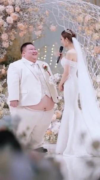 要说新郎有钱吧,礼服盖不住肚脐,没钱吧能娶这么漂亮的新娘!这难道真是遇到爱情了?