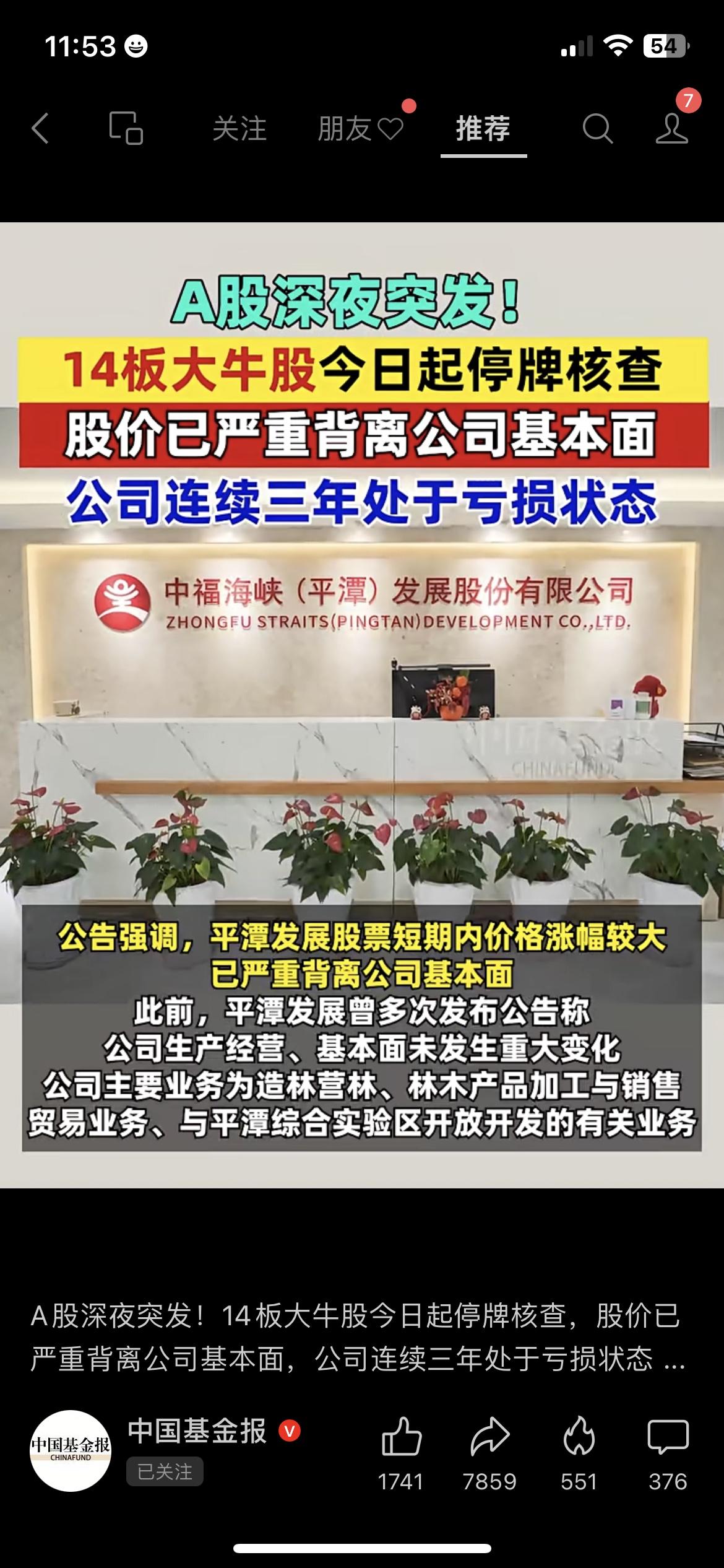 14连板妖股突然停牌!三年巨亏还暴涨255%,散户要慌了? A股又现魔幻时刻!平潭发展14连板后被紧急停牌核查,这只三年亏超10亿的绩差股,靠着“算力+国企改革”概念狂涨255%,现在突然踩刹车,散户直接懵了:是有雷要爆,还是监管降温? 你追了这只妖股吗?停牌后该持股还是跑路?评论区聊聊,看看谁被这波走势惊到了! A股 妖股 停牌核查 股市热点 平潭