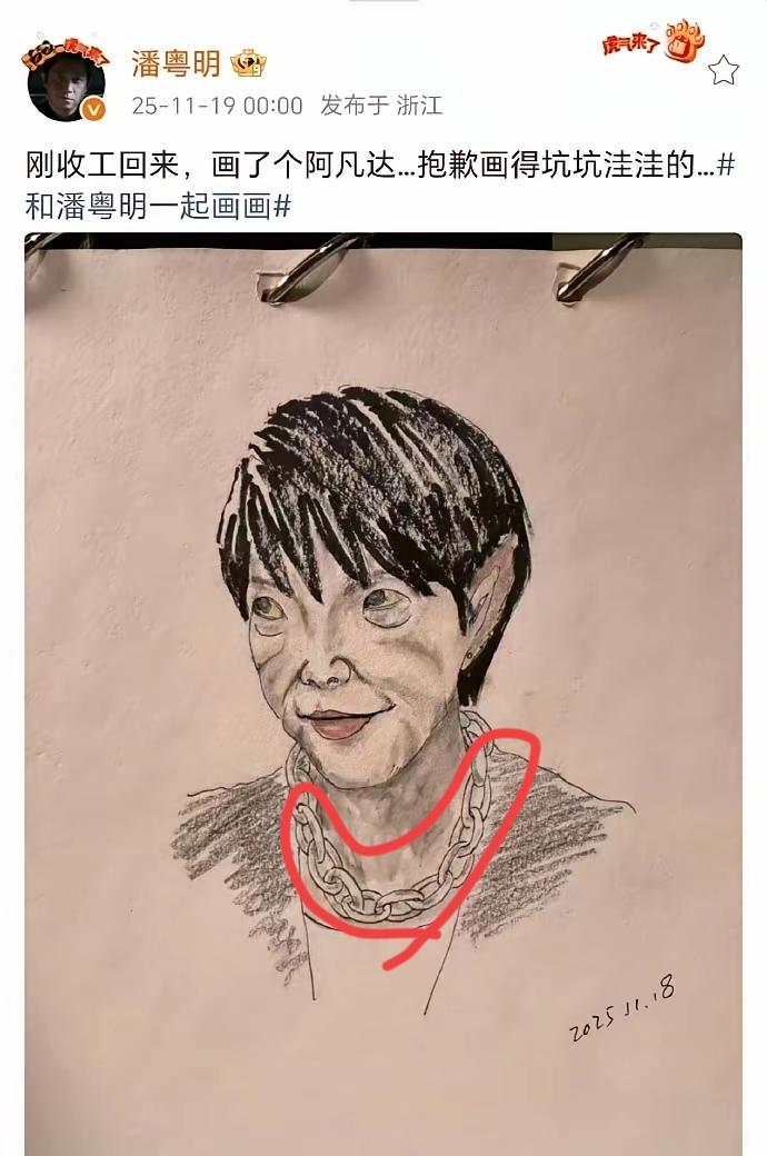 潘粤明的高明之处就是给她画了个狗链子,非常粗,非常牢固那种。大家都知道链子的另一头是谁。另外,潘粤明说画的是阿凡达,也就是说,她不是人。然后又把她的眼睛画得非常邪恶,俗话说相由心生,这也说明了她内心险恶。哎,阿凡达里也有坏种啊。 高市早苗“可能成为日本存亡危机” 高市早苗能带领日本走出经济困境吗 如何评价日本首相高市早苗涉台言论 日本若武力干涉台海将面临怎样后果 高市早苗演技派