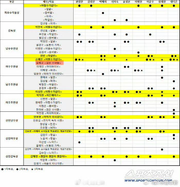 46届韩国青龙电影奖最佳女主角角逐中,三轮投票下来宋慧乔的得票为0,而孙艺珍三轮皆是第一名。这样的姐姐毫无疑问的是青龙影后。