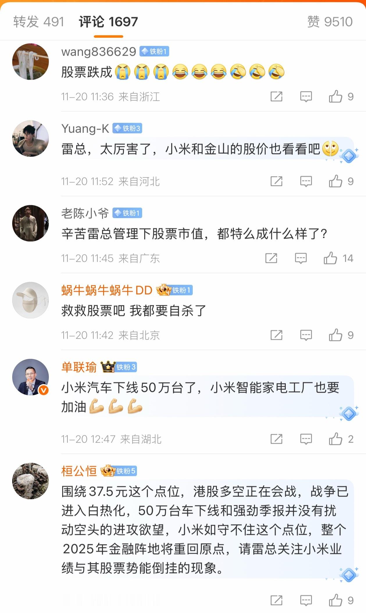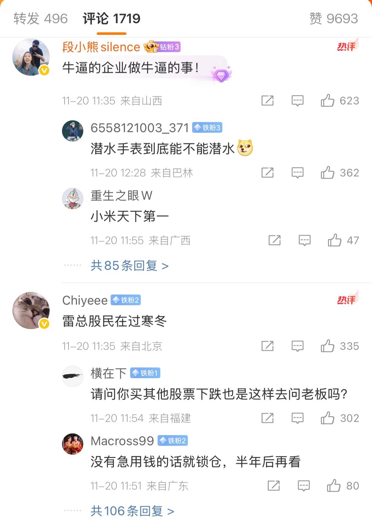 首先祝贺小米汽车,达成新的“里程碑”!不过雷总的评论区啥情况?全部在讨论小米的股票,去看了一下确实让人心慌。还有人问,潜水表到底能不能潜水?雷总已经那么辛苦了,你们就别在这里添堵了,行吗!