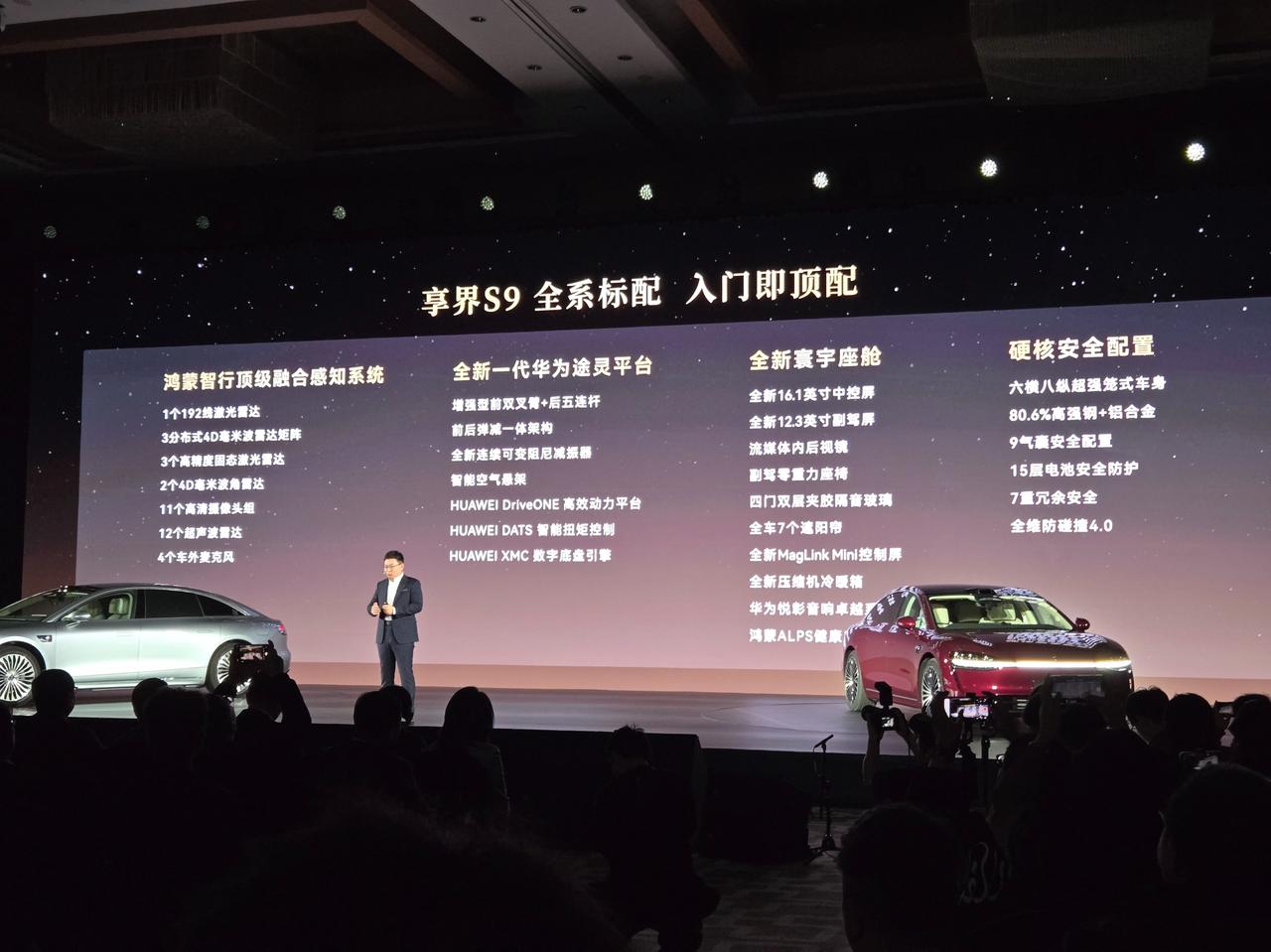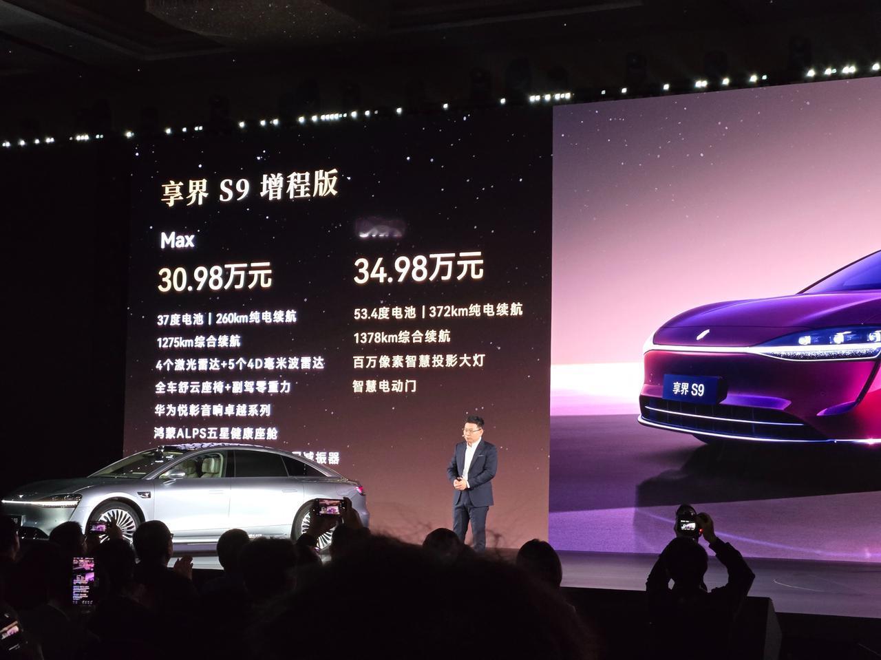 发布会上面说了,新款享界S9才是完全体,所以新在哪? 1、全新寰宇之星车标+标志性星河大灯+星云尾灯+寰宇车漆+新增黑曜套件; 2、智慧电动门+百万像素智慧投影大灯; 3、后排、副驾零重力+电动遮阳帘都配齐了; 4、全新副驾屏+Maglink Mini控制屏+智能投影巨幕系统2.0,满配官方说有十块屏; 5、旗舰感知系统,华为乾崑智驾 ADS 4; 6、全新一代途灵平台,尊界S800同款,标配空悬+连续可变阻尼减震器。 增程卖30.98-34.98w,纯电32.98-36.98w,从原来总共6款车型瘦身到4款车型,配置更丰富,属于是加量不加价了。
