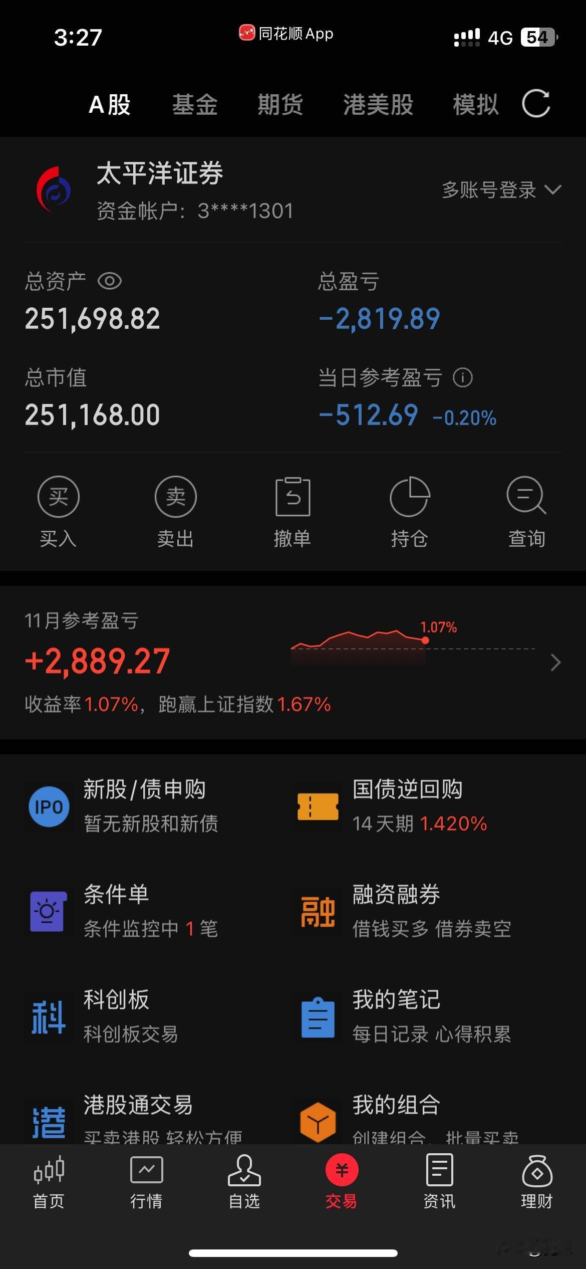 这股市这段时间不好做啊,昨晚英伟达财报超预期,早上忙不迭找了个回调较大的优质科技股亨通光电买入,感觉就像是被我买崩的[发怒]。因为有减仓利空,早盘直接高点清仓康隆达,大盘实在是弱,下午实在忍不住大幅减仓,低点直接割肉火炬,亚香。减仓盈峰。今天又亏5百多,这个月还有一点盈利。看来不减仓盈利可能保不住了。这个月太难做了。