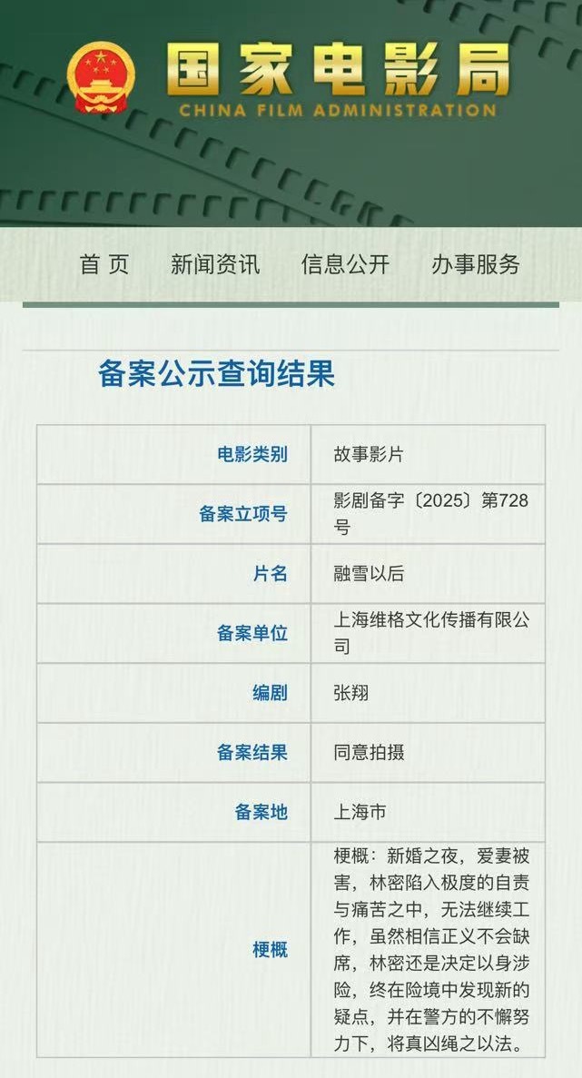 由金熊奖得主刁亦男导演执导,张翔担任编剧的新片《融雪以后》完成备案,网传该片将邀请易烊千玺、辛芷蕾、廖凡的超豪华主演阵容参演。