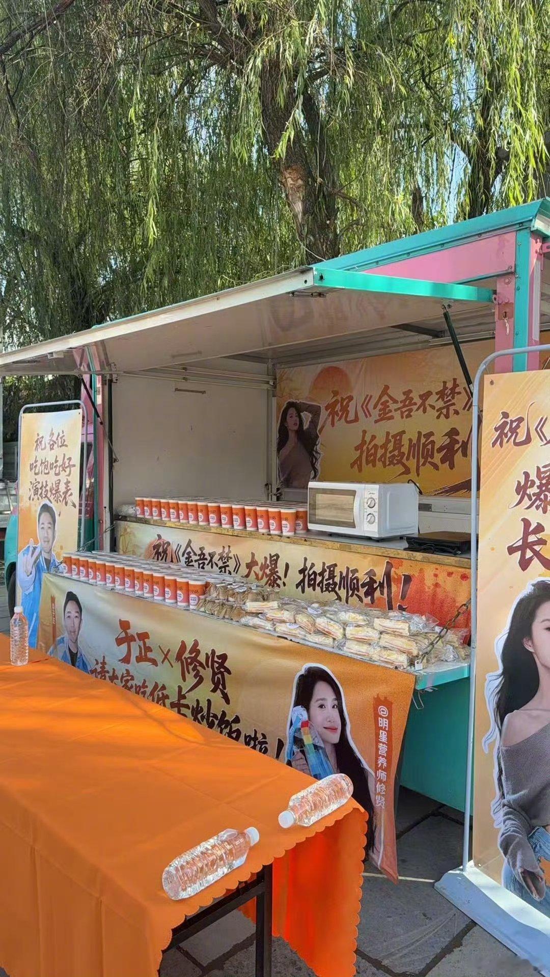 于正这波操作太接地气了,在剧组支起了炒饭摊,周围摆的全是给工作人员准备的餐食