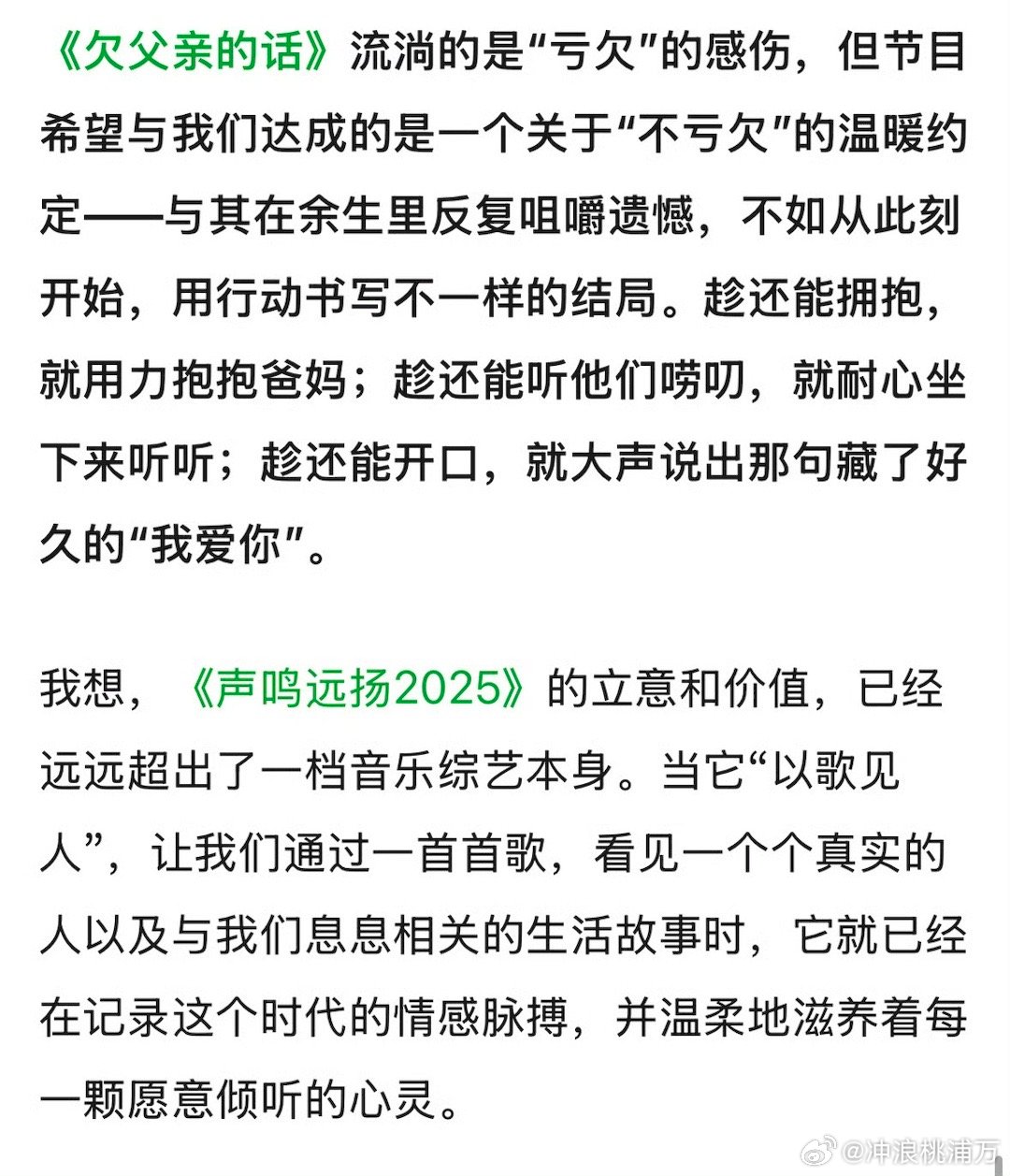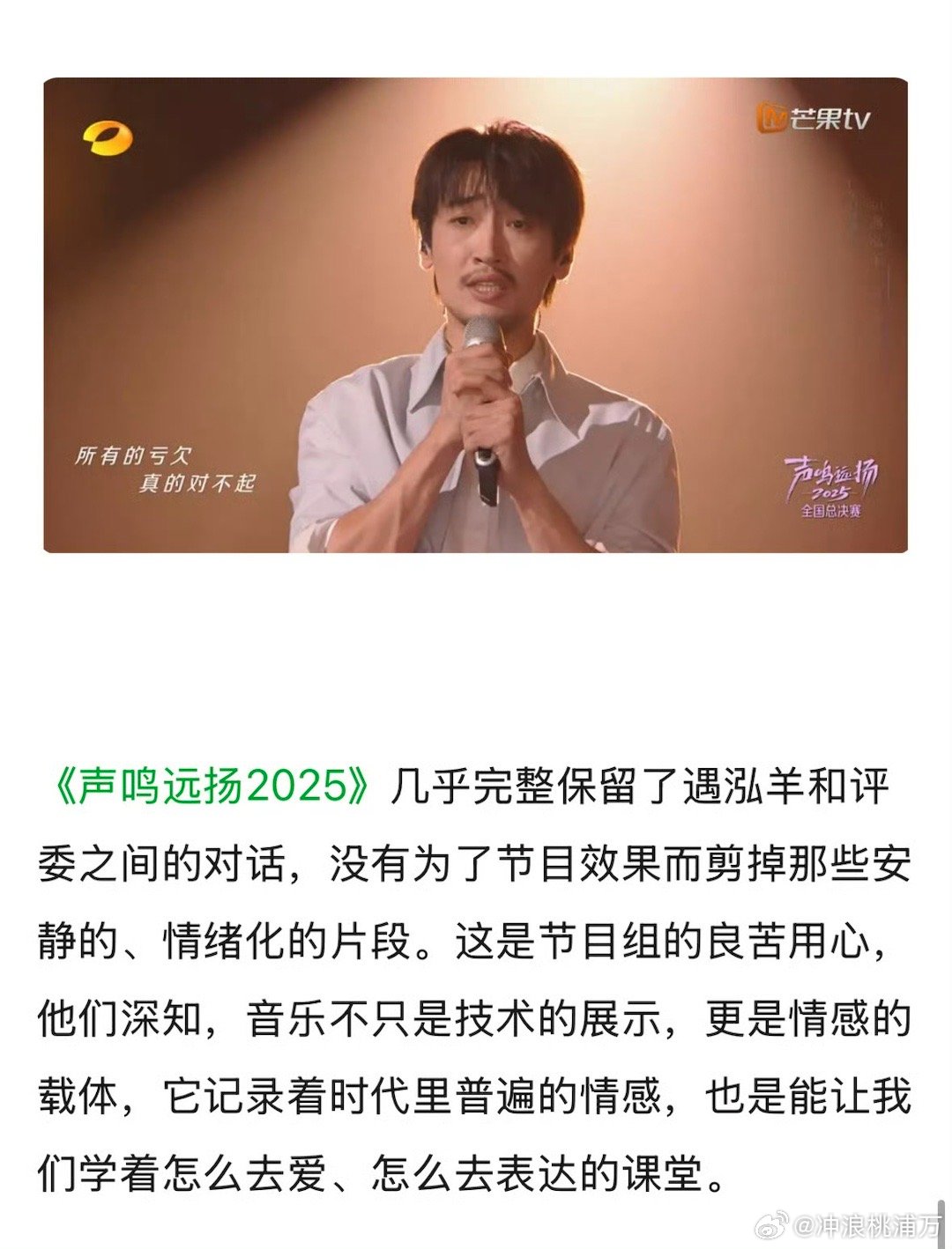 从遇泓羊的歌声里听出了他的遗憾,未能见到父亲最后一面的遗憾全都被他融进了歌声里,一整个动容了……