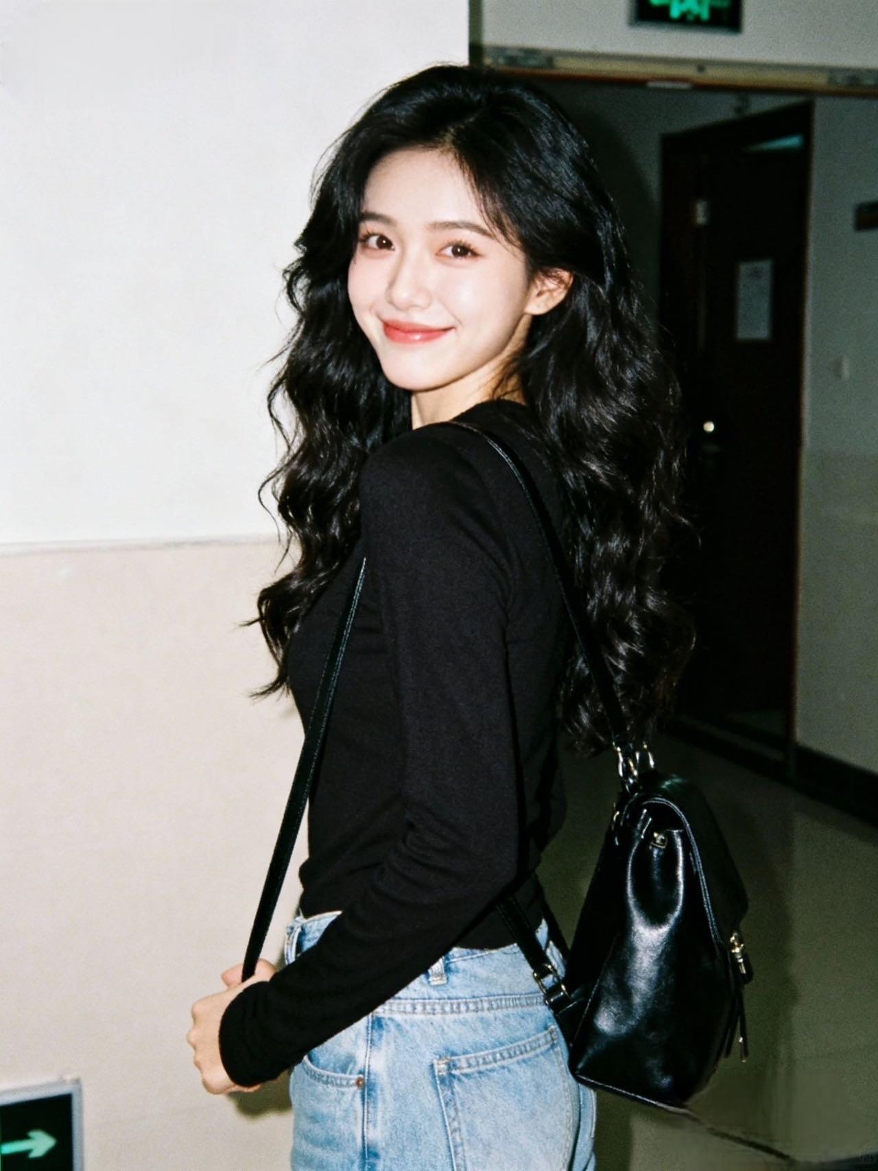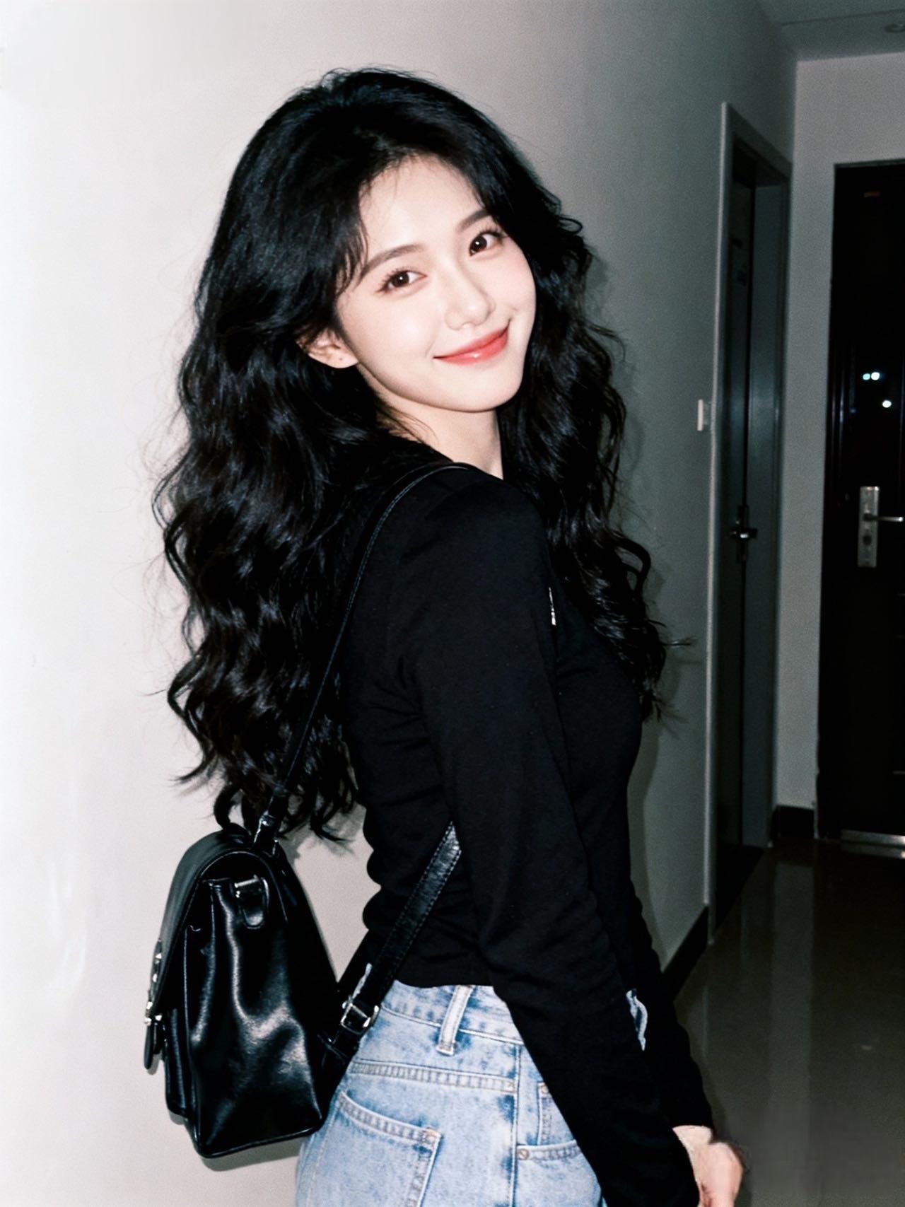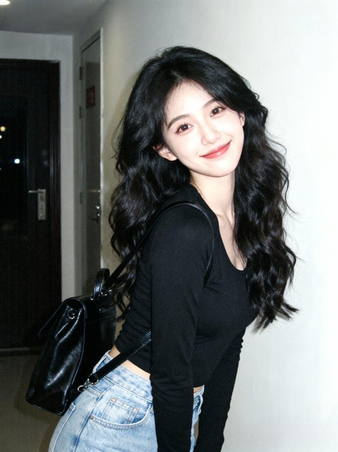 👖今天这套日常出街look也太显活力了吧! 一件黑色V领短款长袖上衣,完美勾勒腰线,露出一点点小腹超有氛围感~搭配这条浅蓝牛仔阔腿裤,宽松版型对各种腿型都很友好,走路带风还特别显腿长。背上黑色皮质小包,简约又精致,日常通勤或者和朋友逛街都很合适。一头大波浪卷发随意披散,整个人活力满满,谁能不爱这种舒服又时髦的穿搭呢~浅蓝色衬衫穿搭 黑色系衣服穿搭 高级感黑色穿搭 牛仔衬衫搭配女 玫红色露肩衬衫 温柔风露肩衬衣 气质v领穿搭 黑色小众穿搭 高清美女 高雅气质美女