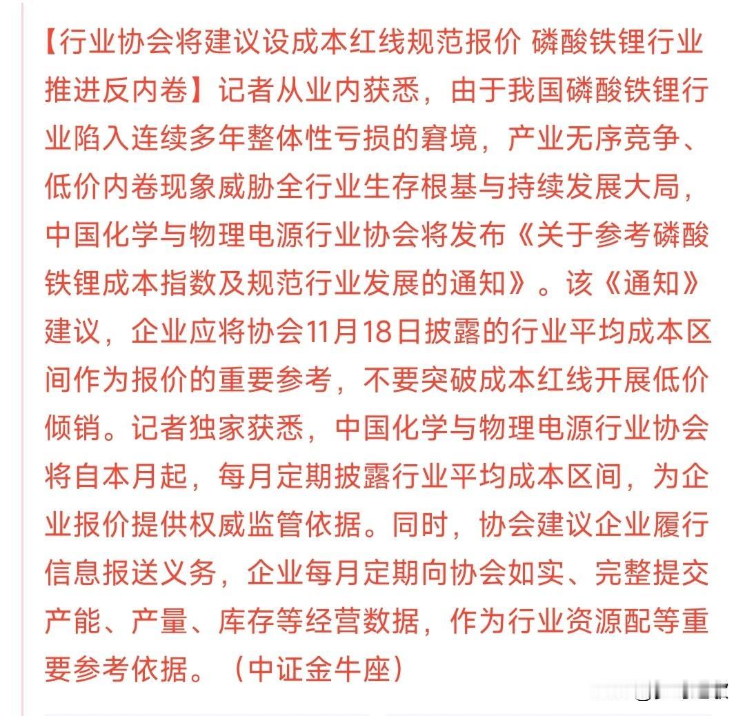锂行业迎来重大利好,托底的政策来了,“反内卷”又添新成员 磷酸铁锂行业推进反内卷