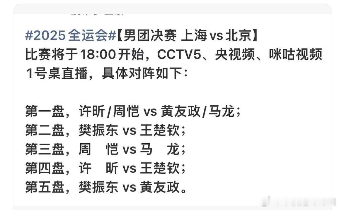 第一盘:黄友政马龙vs许昕周恺 第一盘黄友政马龙拿下第二盘:王楚钦vs樊振东第三