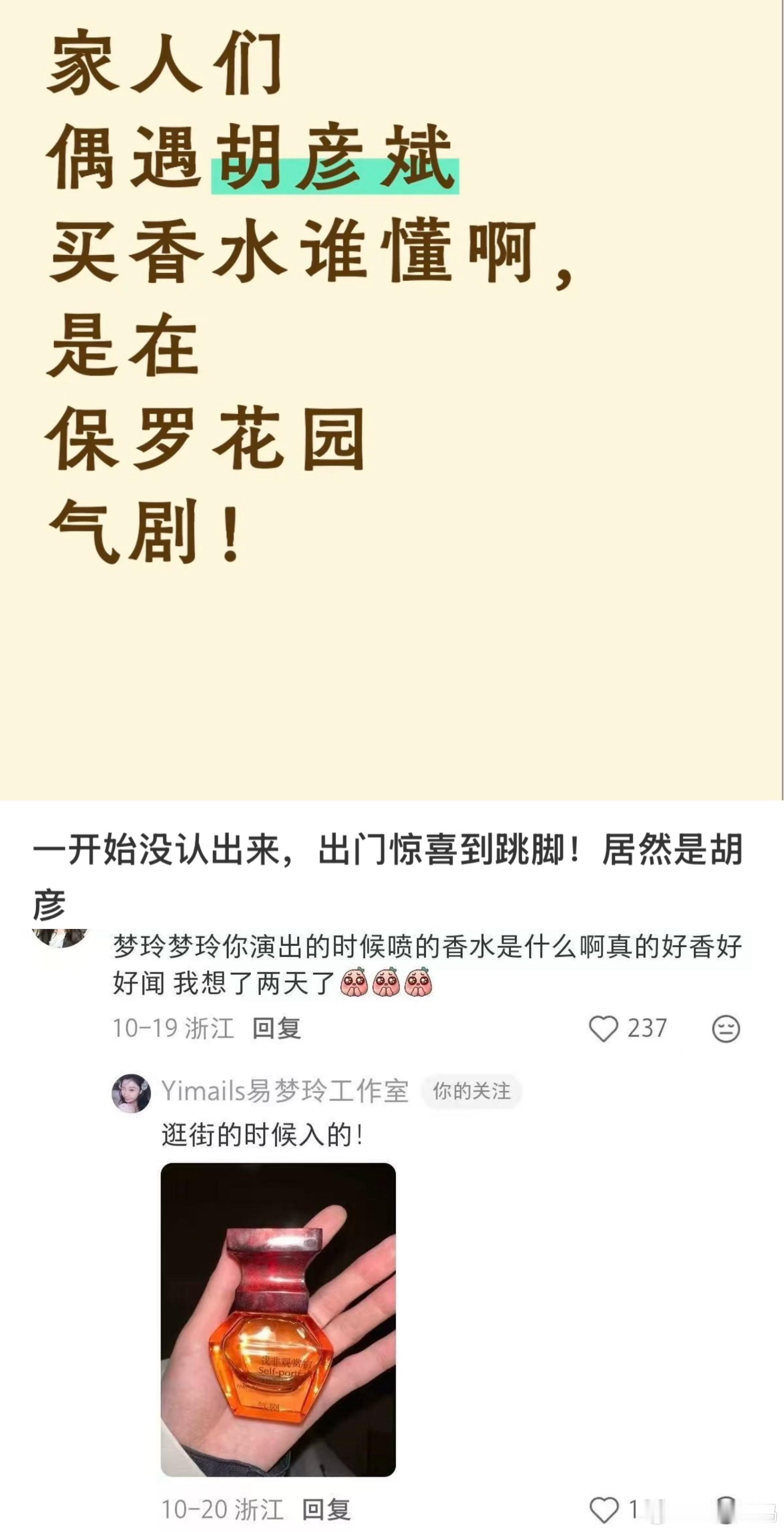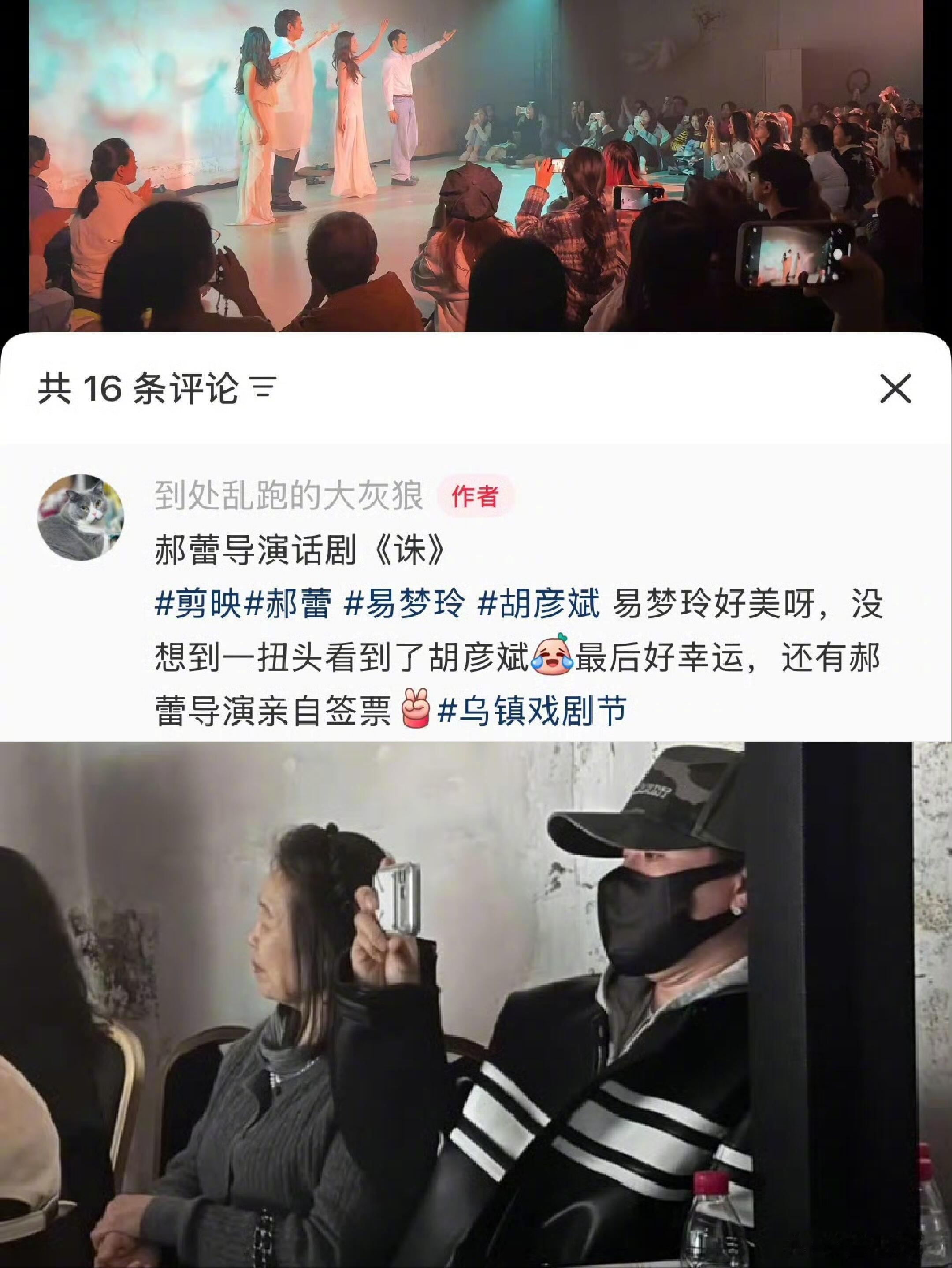 原来胡彦斌易梦玲恋情早就有迹可循了,两人都参加了郝蕾表演训练营结课活动,易梦玲作为郝蕾导演的话剧《诛》女主角,胡彦斌和妈妈都去看了,而且还一起去看了话剧,同款手表同款香水…