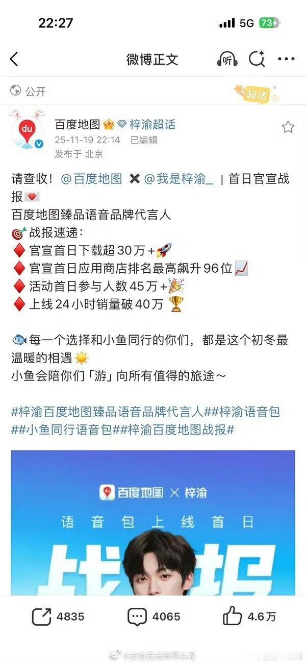 梓渝百度地图还发了官方战报,拉新30万,参与人数45万,不是你们粉丝平时都好低调哇
