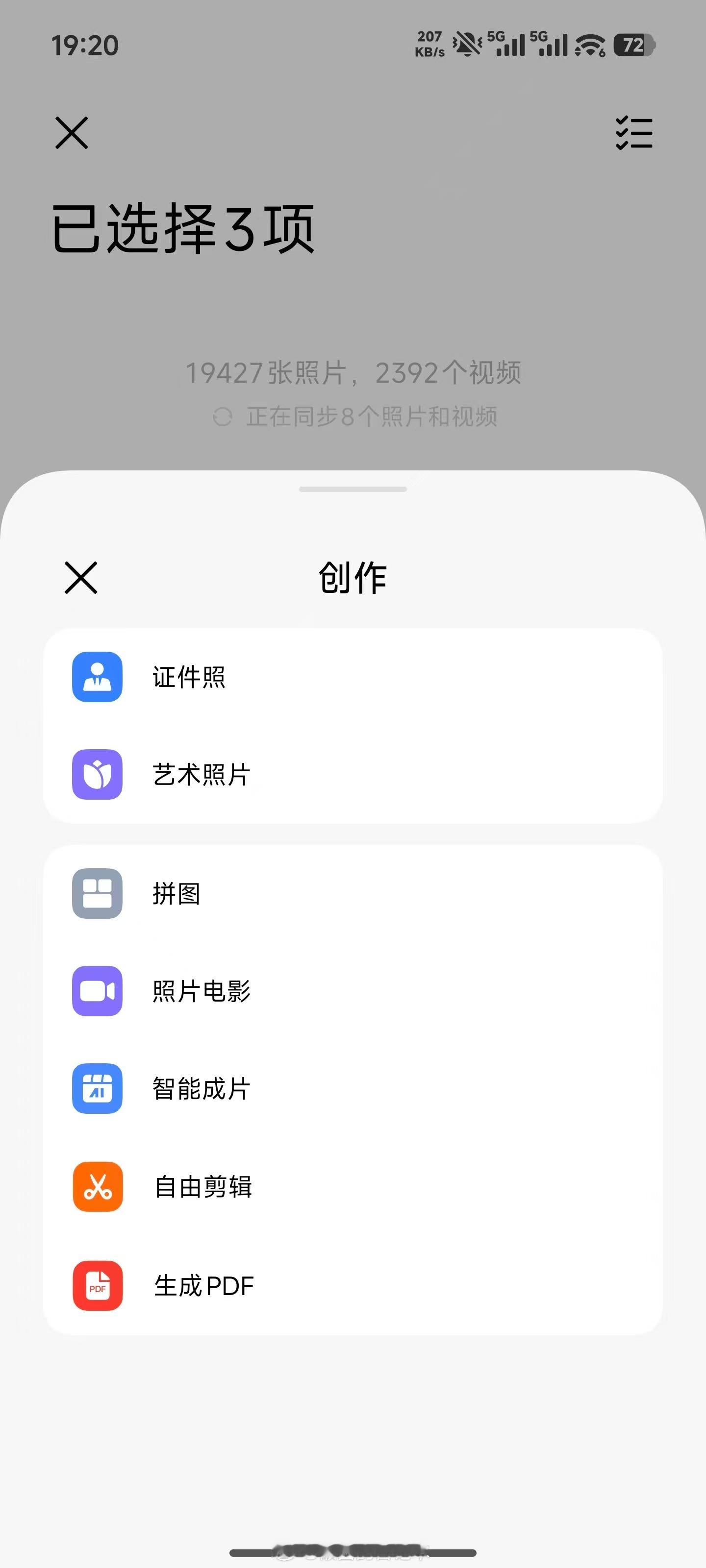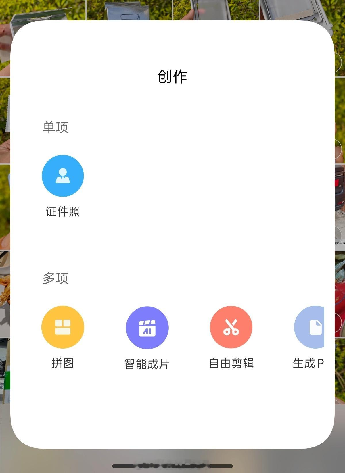 “相册”创作菜单改版。图一,旧版图二,新版