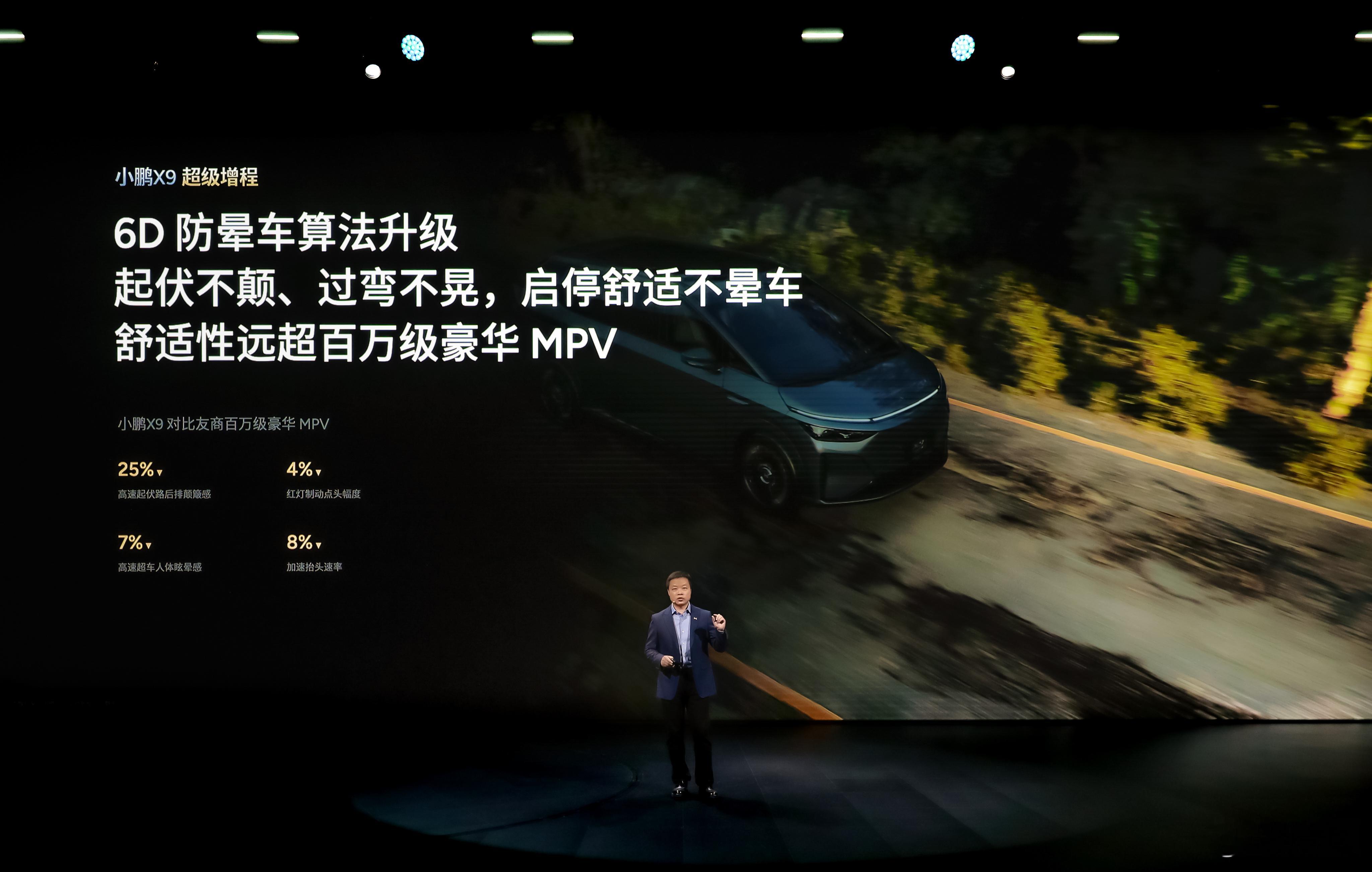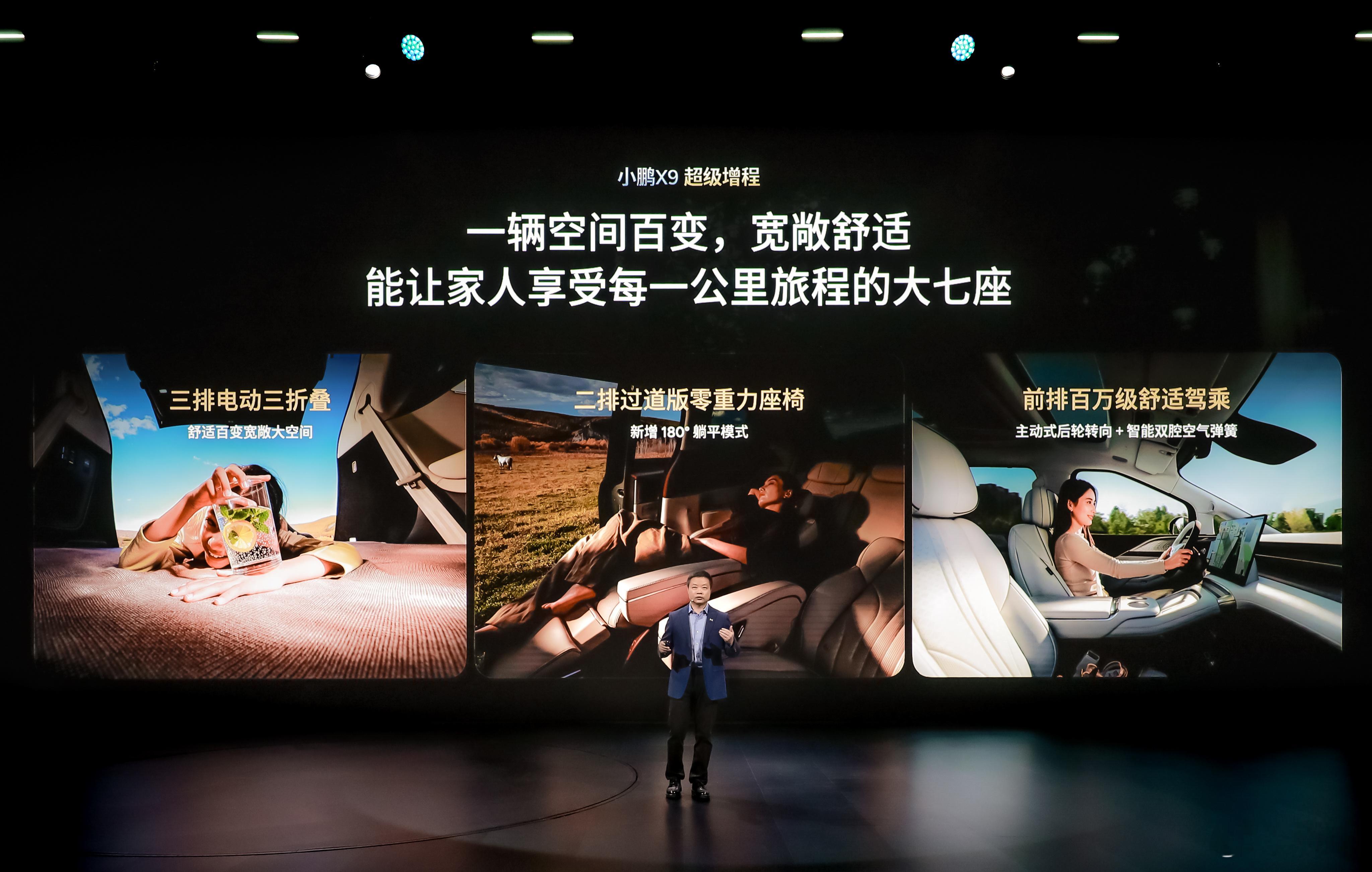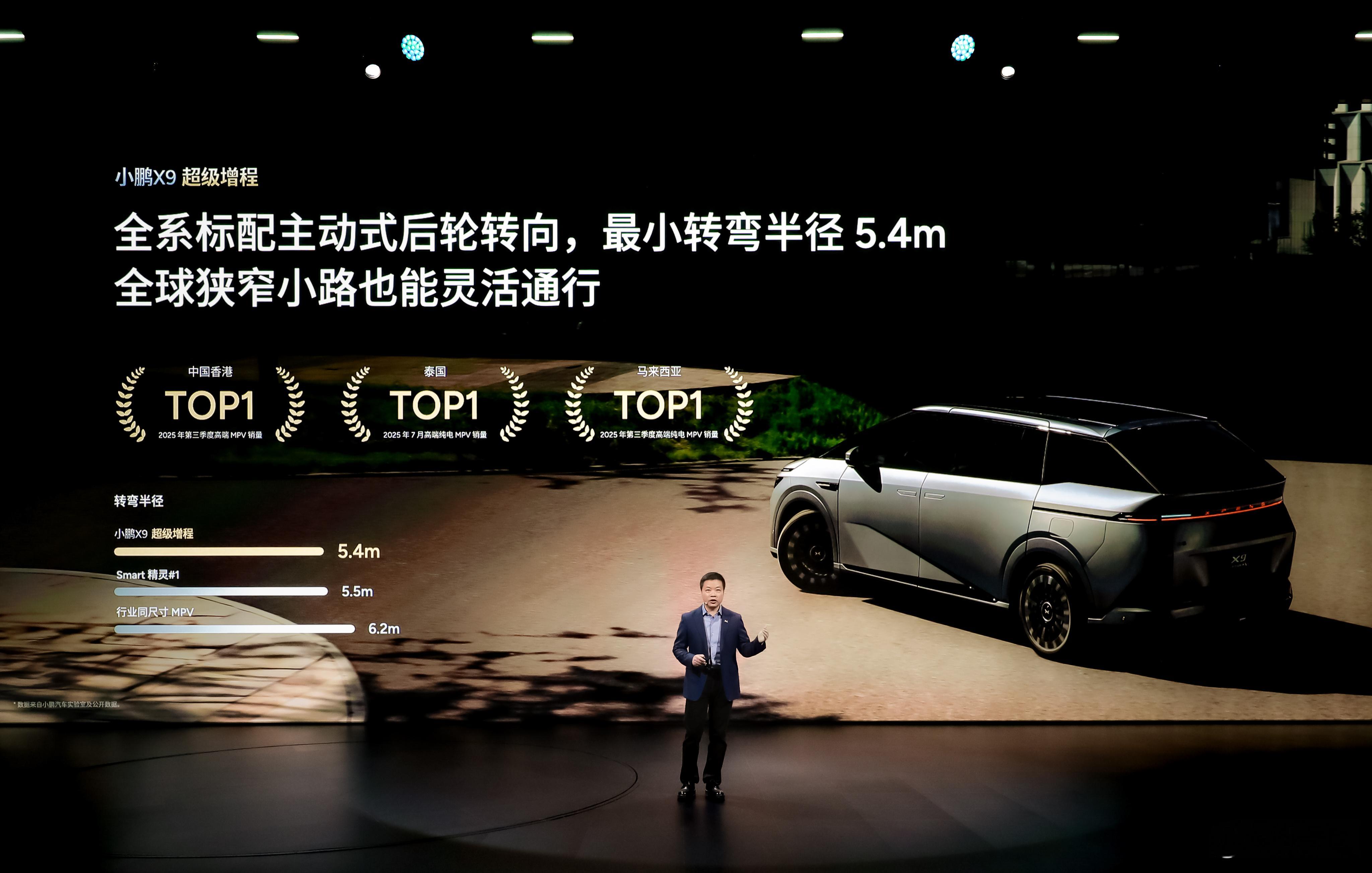 小鹏X9驾驶席同步升级电容方向盘与21英寸全景HUD,通过卫星按键实现便捷操控,让负责驾驶的家人同样感受科技关怀。小鹏X9超级增程全系标配主动式后轮转向,凭借5.4米最小转弯半径,让大型MPV具备超越小型车的灵活性,这正是其在香港、东南亚等市场成为销量冠军的因素之一。同时,全系标配的双腔空气弹簧不仅提升乘坐舒适性,更具备90mm高度调节功能,从容应对非铺装路面,完美兼顾城市驾驶便利与多路况通过性。专为老人儿童开发的6D防晕车系统,依托智能底盘调校确保全路况平稳性,带来超越百万豪车的乘坐品质。