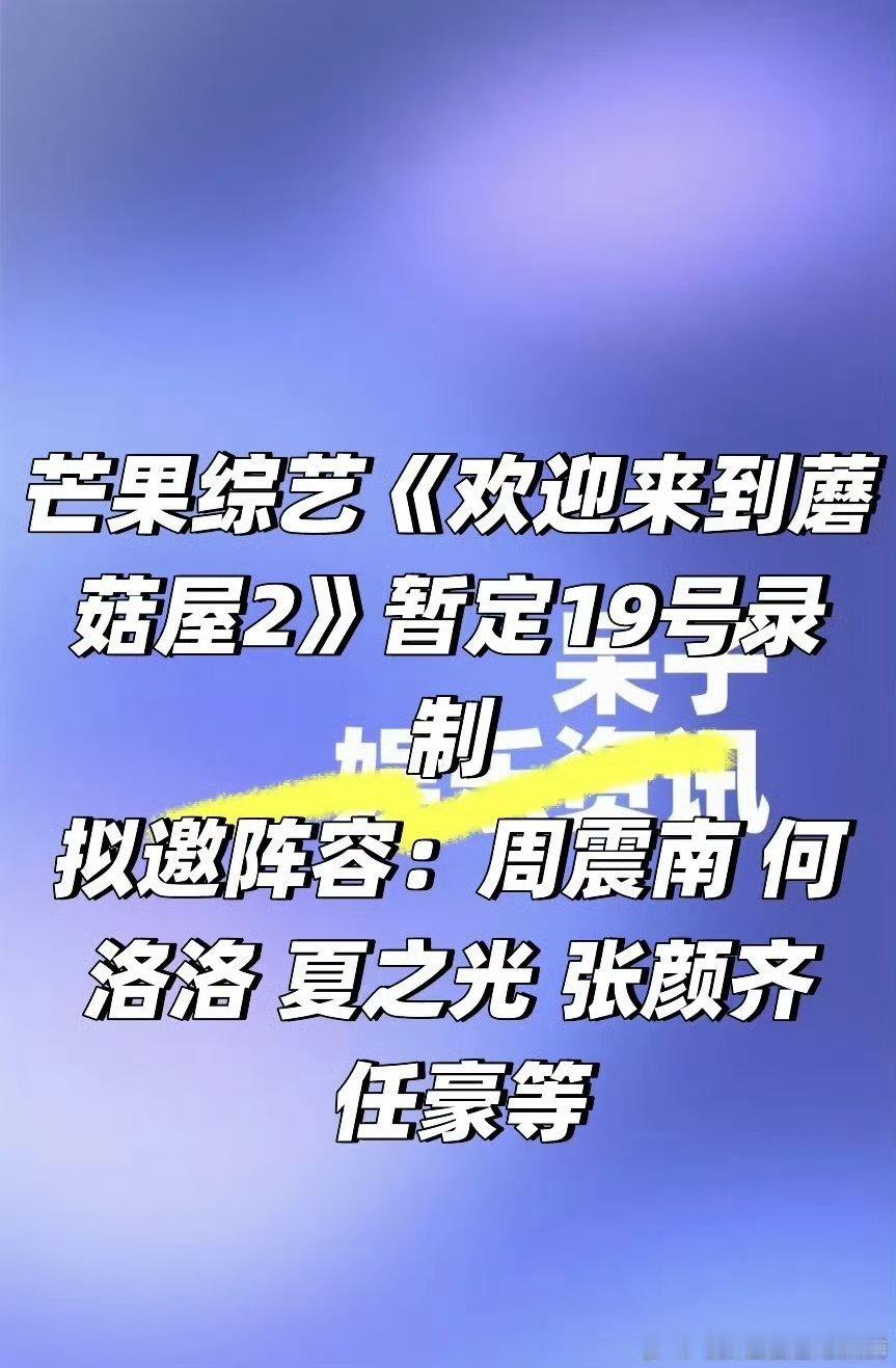 全体起立,壶人要来欢迎来到蘑菇屋第二季了嘉宾阵容:周震南、何洛洛、夏之光、张颜齐、任豪 等R1SE成员 合体了终于