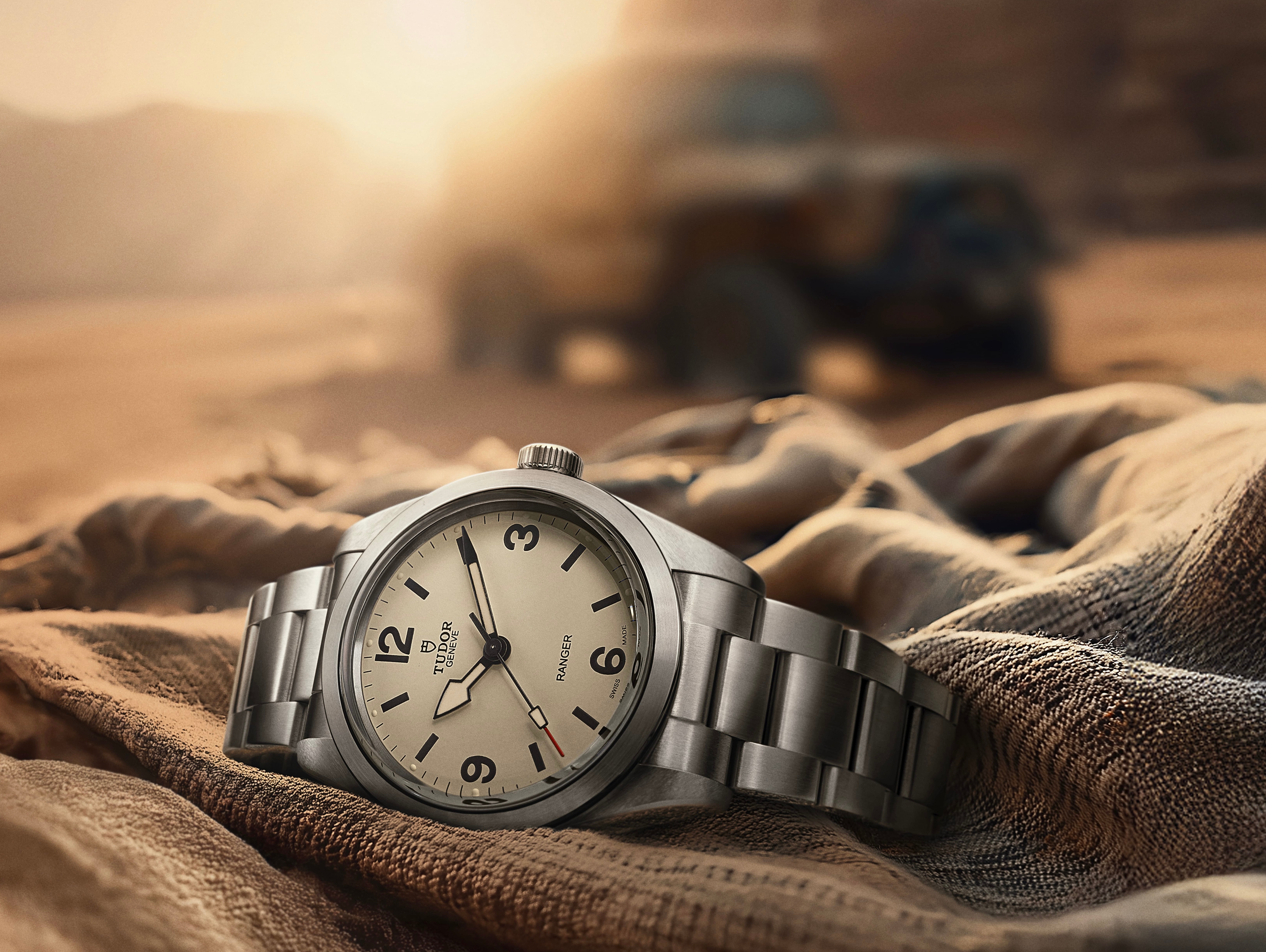 帝舵探险腕表X达喀尔拉力赛新款帝舵游侠型(Ranger)腕表从上世纪五十年代的不列颠北格陵兰考察(British North Greenland Expedition)到如今的达喀尔拉力赛(Dakar Rally),从冰盖探险到穿越沙特阿拉伯空境之域(也称鲁卜哈利沙漠,Empty Quarter)的沙丘,坚固耐用的帝舵腕表始终陪伴着敢为冒险家勇闯地球上那些极端之境。磨砂316L钢表壳,直径36毫米或39毫米,搭配316L钢固定外圈,圆拱形粒纹哑光黑色或“沙丘白”表盘,钟点标记涂有A级瑞士Super-LumiNova®夜光涂层,“帝舵游侠型”指针,涂有A级瑞士Super-LumiNova®夜光涂层,帝舵表原厂机芯MT5400型或MT5402型,获瑞士官方天文台认证(COSC),配备硅游丝及70小时动力储备,五年可转让保用保证,无需登记或定期检查。