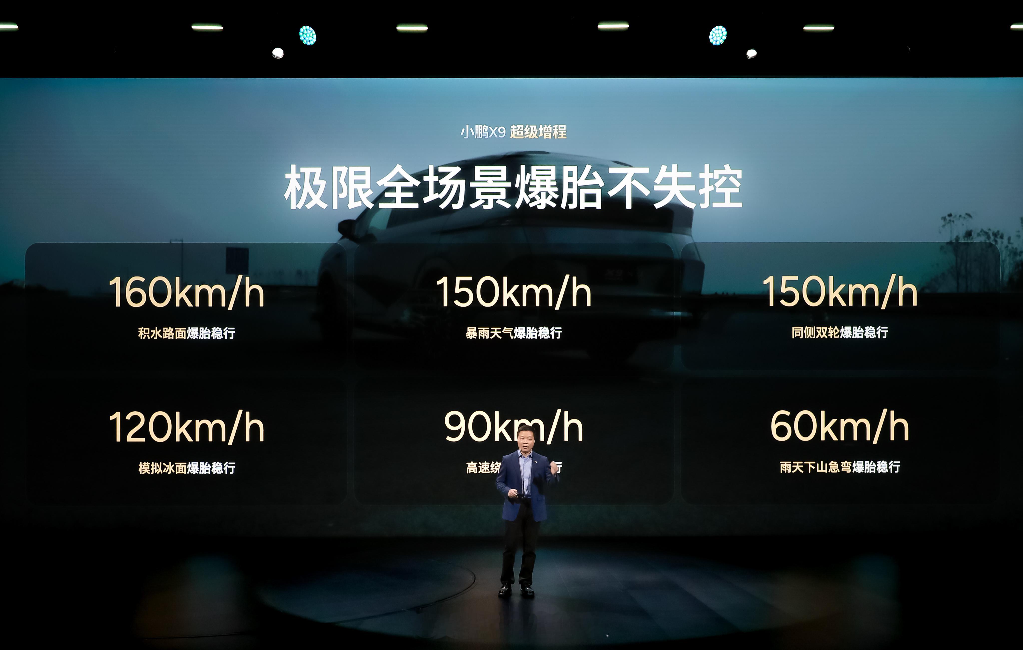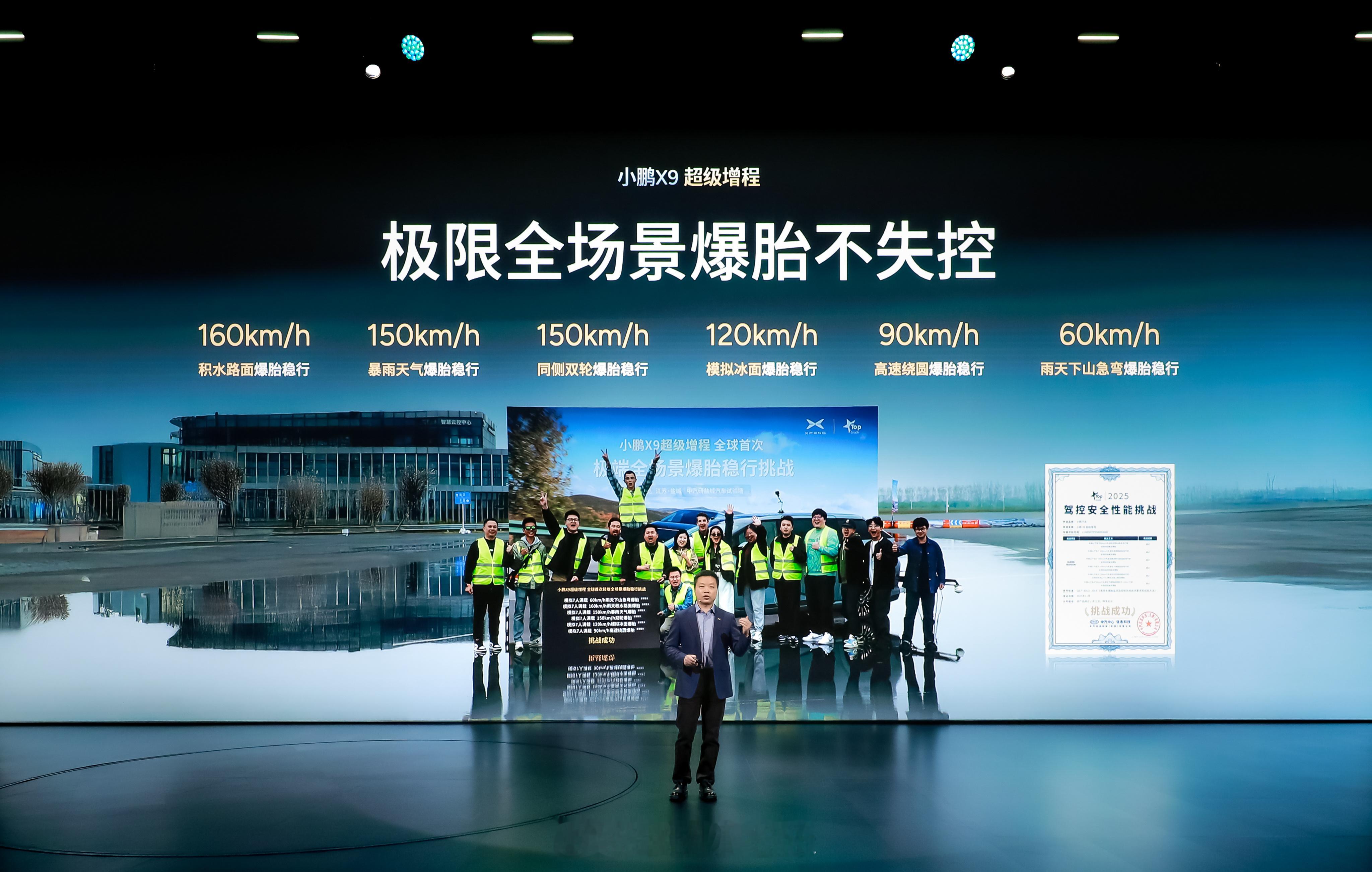 从容应对高速爆胎,是对车辆主动安全的重要考验。基于行业领先的AI底盘,小鹏X9超级增程实现200毫米内识别爆胎状况,自动调整后轮转向和制动系统,并调整车身姿态保持稳定不失控。即便在模拟七人满载状态下,以小鹏X9超级增程超高时速历经积水路面、暴雨天气、低附着力冰面等极限场景验证,均展现出可靠的爆胎稳行能力。在主动安全领域,小鹏X9超级增程具备130km/h的AEB自动紧急制动与AES自动紧急避让能力,能有效应对高速施工区、前方抛锚车等突发路况,树立大七座主动安全新标杆。