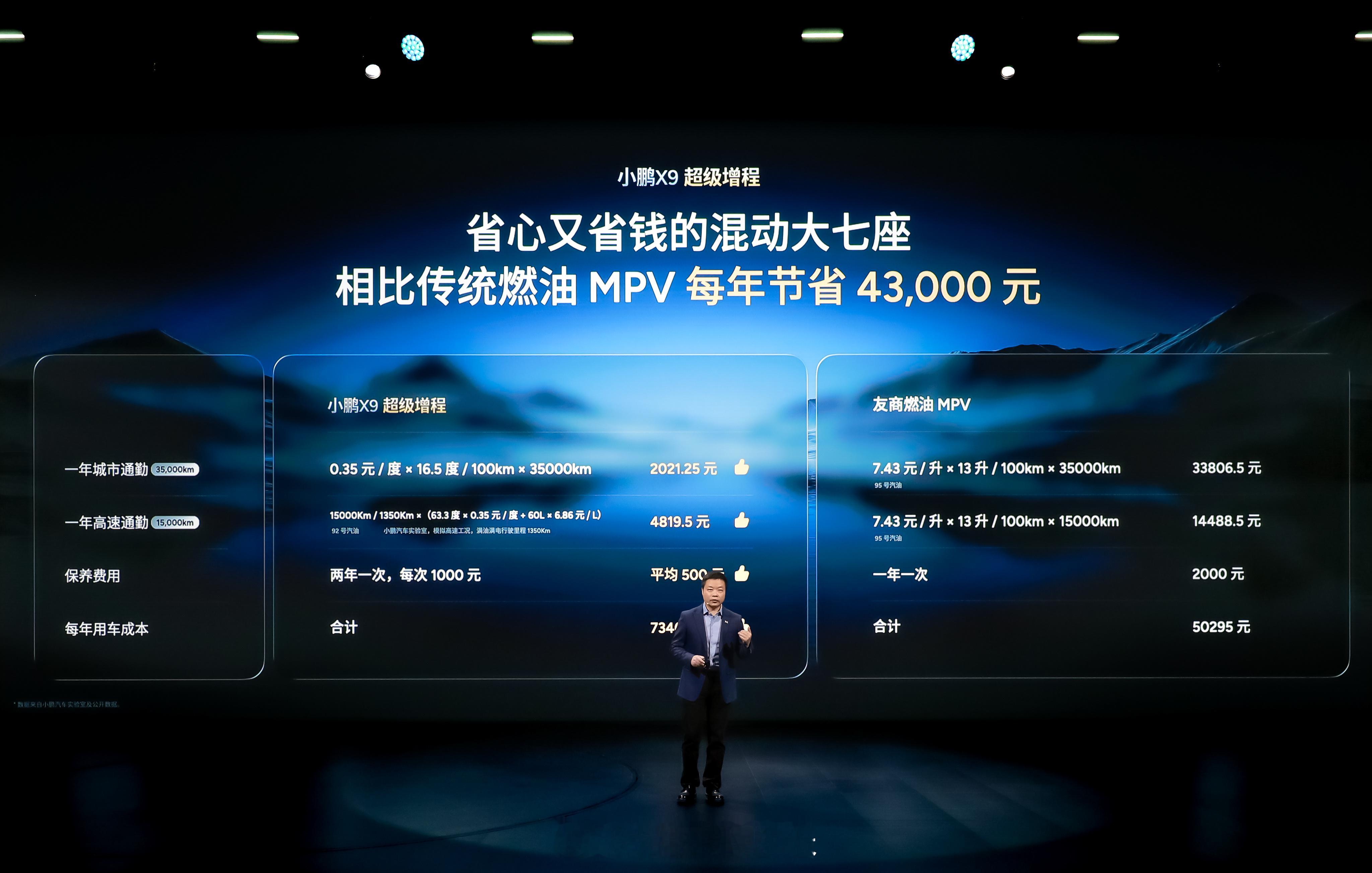 小鹏X9超级增程以“大油箱+大电池”的黄金组合,真正告别新能源续航焦虑。其搭载60L大油箱与63.3kWh大电池,1602kmCLTC综合续航全球第一,452km纯电续航可满足一周的日常通勤,实测满油满电可绕海南岛两圈,真实续航突破1200公里。在能耗方面,CLTC综合电耗仅16.5kWh/100km,WLTP油电综合油耗低至2.53L/100km,成就综合能耗最低大七座。更支持92号汽油,无惧偏远地区油品差异;相比传统燃油MPV年均节省约4.3万元,真正实现千里出行与全周期经济性的完美兼顾。