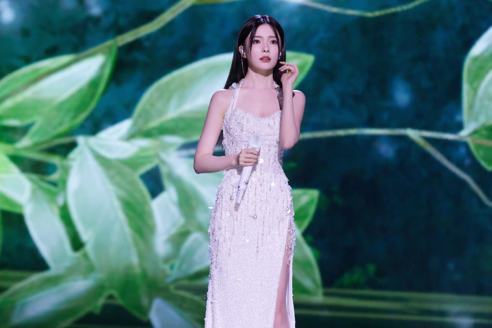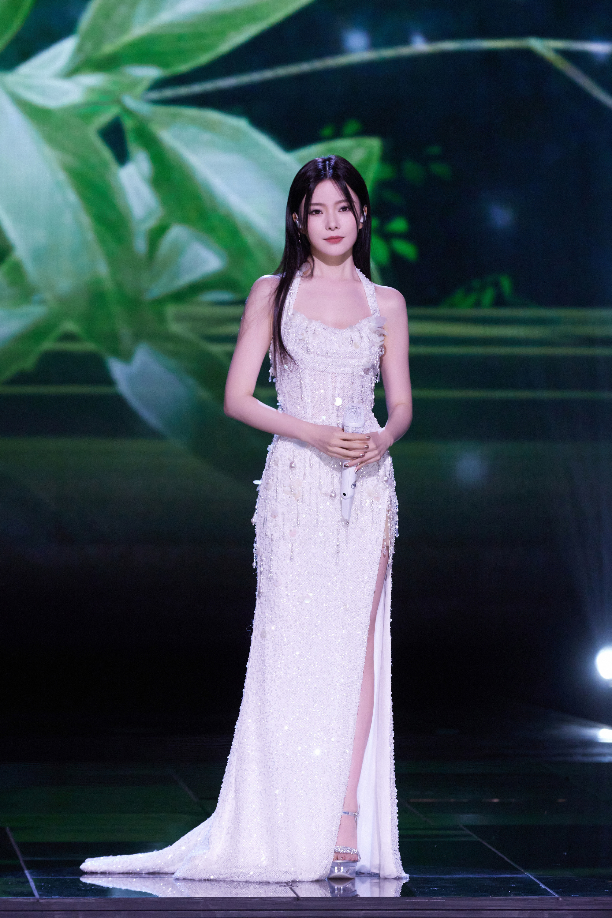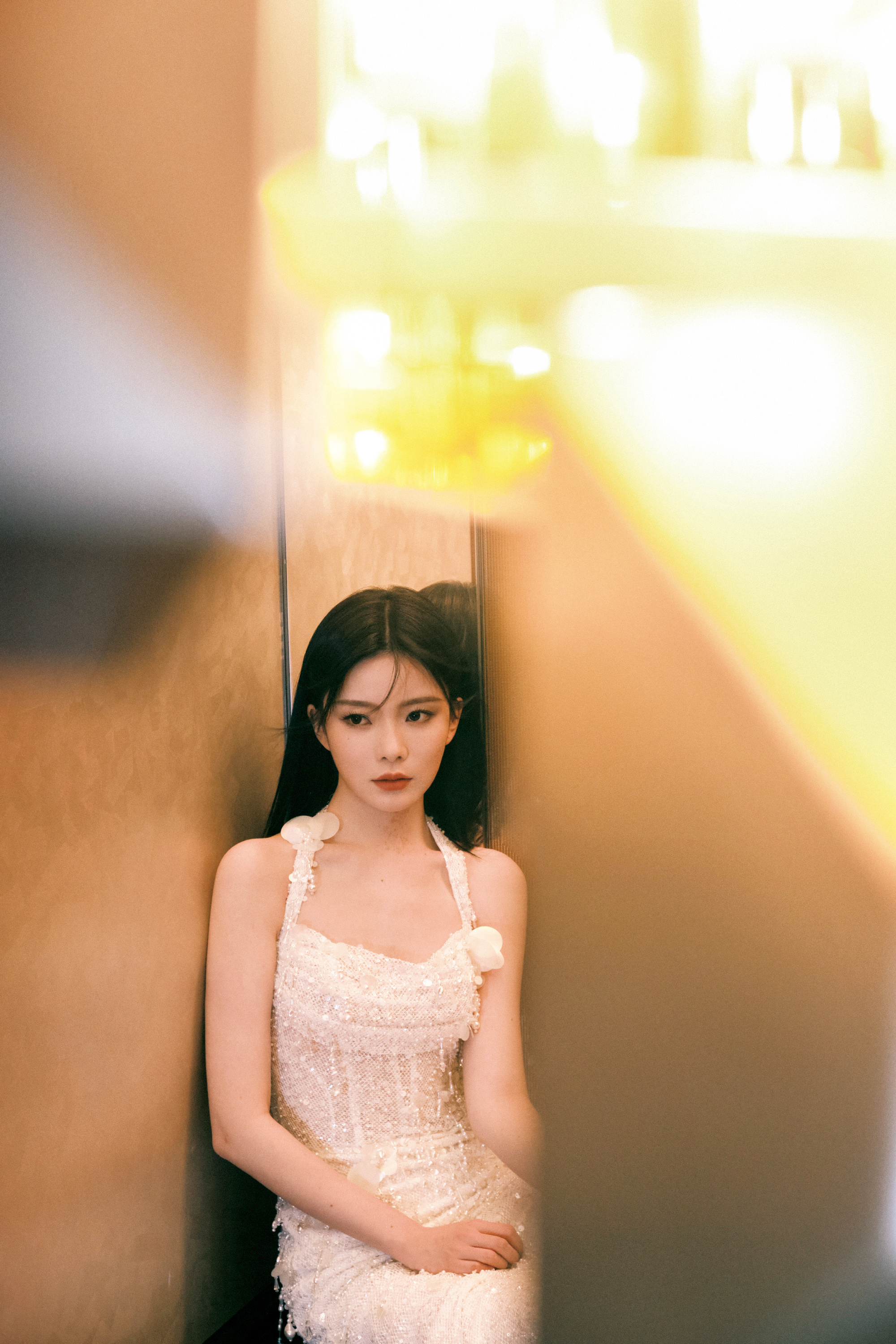 陈卓璇白色珍珠挂脖裙:流光闪烁,别具温柔气质