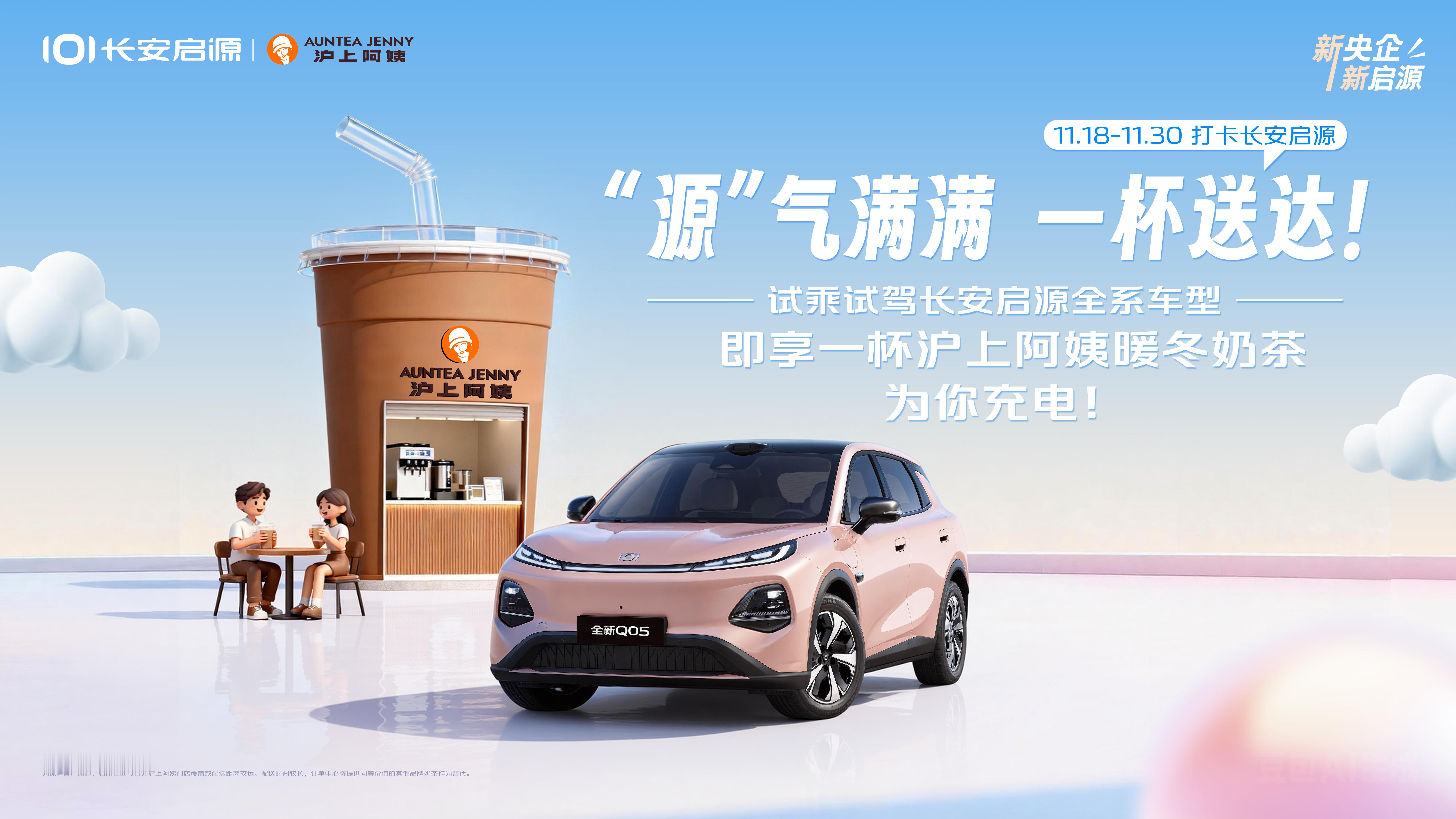 联名沪上阿姨,开启“甜酷生活”新玩法!当纯电SUV的科技感撞上国潮奶茶的治愈甜,会擦出怎样的火花?11月20日,长安启源全新Q05与沪上阿姨正式联名,以“智享出行+甜酷生活”为年轻用户带来一场跨场景的重磅惊喜!这场“花活上新·双倍狂想曲”不仅是一次品牌跨界,更是生活方式的深度融合。联名权益诚意满满:喝沪上阿姨新品奶茶,即有机会抽中长安启源全新Q05三年使用权;到店试驾新车,还能免费获得限量联名奶茶!一杯甜,一脚电,让出行与休憩无缝衔接。作为“全球都市精品纯电SUV”,长安启源全新Q05更以满配科技诠释硬核实力——同级唯一搭载激光雷达,配合天枢智能驾驶系统,实现“眼观六路”的精准感知;全系标配宁德时代电芯,续航耐用更安心;首发4纳米天玑座舱芯片与24GB大内存,操作流畅如旗舰手机;SPA级舒适座椅更配备吸风通风与8点按摩,让驾驶如休憩般享受。科技可以很硬核,生活也可以很甜酷。这一次,长安启源与沪上阿姨携手,打破边界,为年轻一代奉上出行与生活的双重狂想!