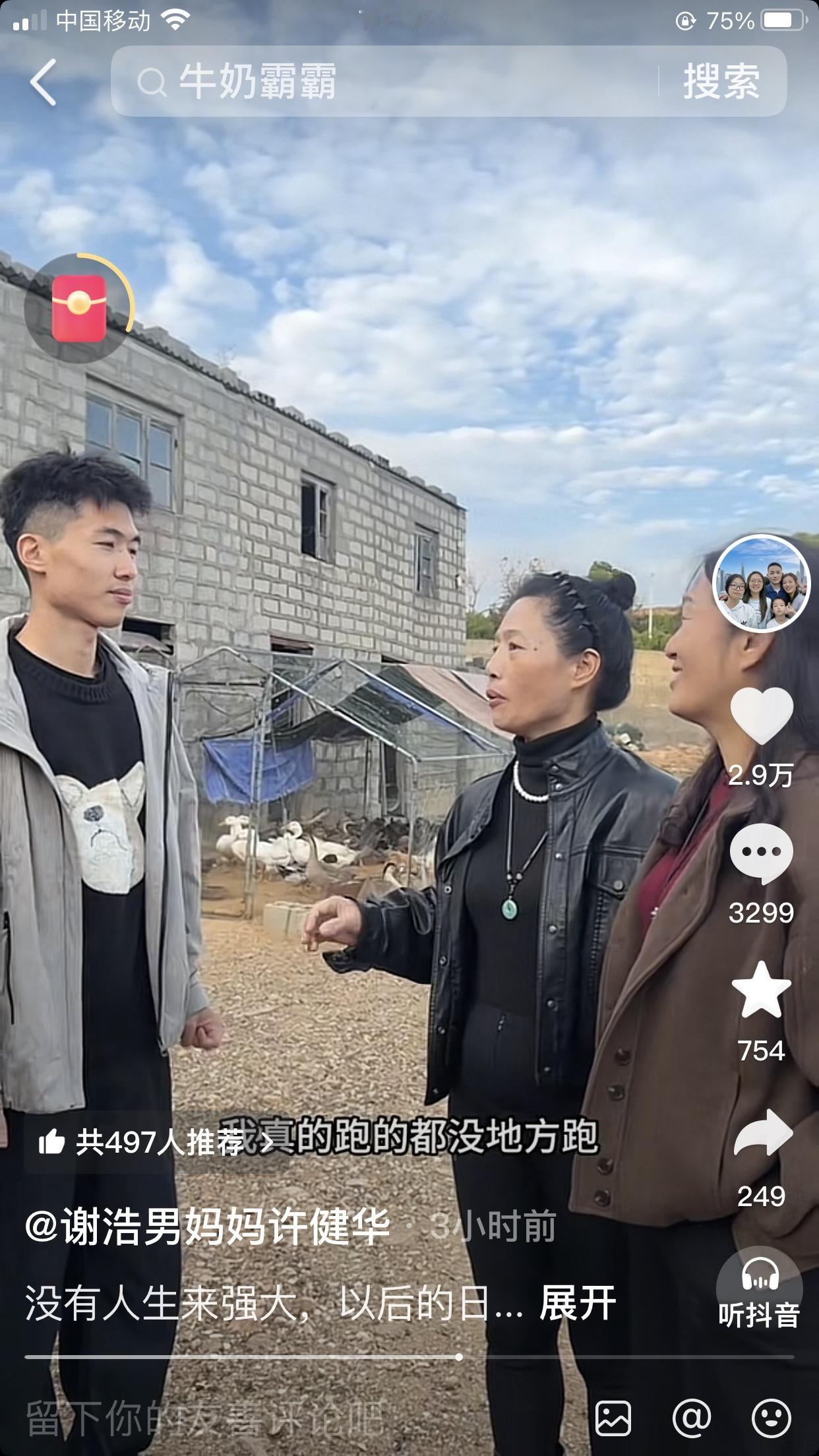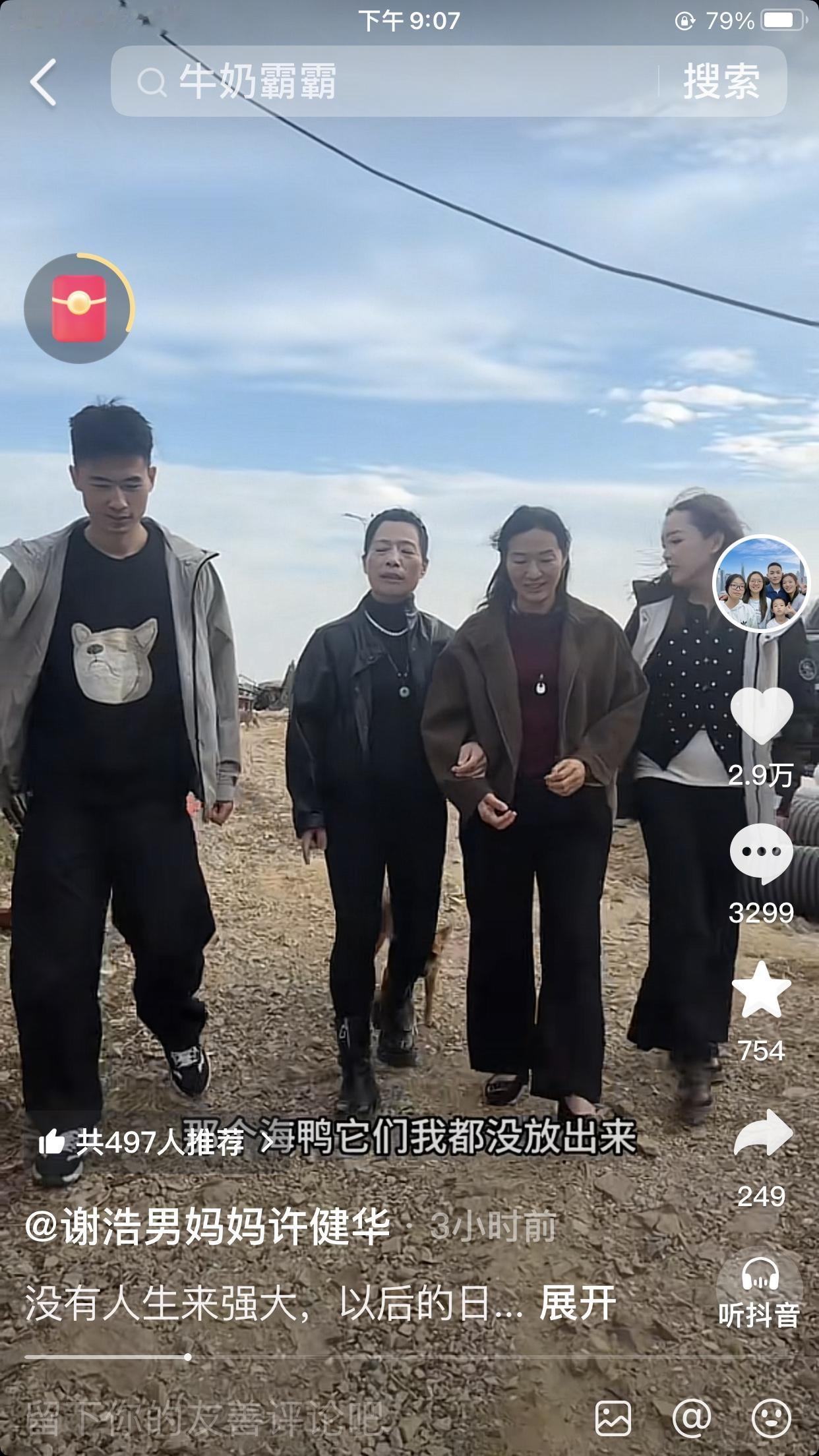 卖惨模式又开启了,谢浩男妈妈许健华卖完惨,海军妈妈又开始卖惨了。因为谢浩男要给海军安排一场直播,这场直播应该是营销海军妈妈。 海军妈妈被他爸害背一百多万债,然后回来养鹅又亏了三十多万,再嫁怕那边不接受两个孩子。看到这些不是比浩男妈妈还苦啊。 海军的抖音名字也由“牛奶霸霸”改成“刘海军(努力创业中)”,看到评论区又有一些大妈们流泪了,23号上链接,又该可怜海军妈妈了。 不得不佩服谢浩男编剧把这些大妈们拿捏的死死的。 觉得谢浩男做编剧比读研更适合些。