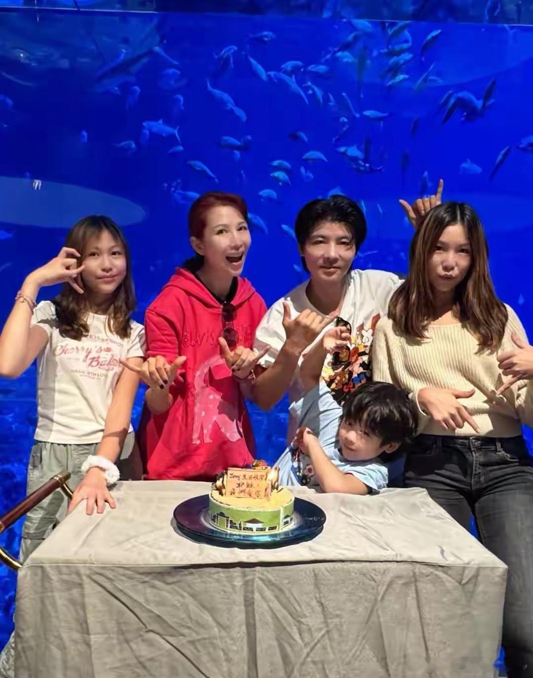 蔡少芬一家为儿子庆生,两女儿染黄发像双胞胎,6岁joey长相帅气!
