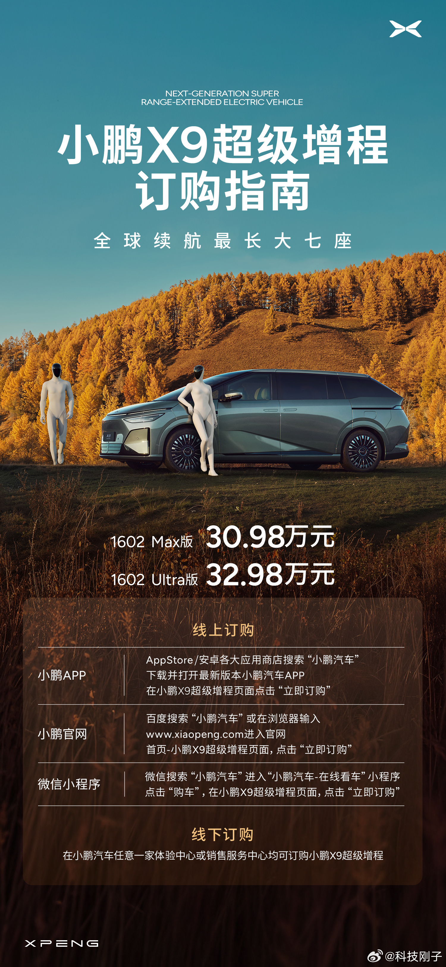 下一代增程终于来了!小鹏X9超级增程正式上市,30.98万起的价格直接把“大七座+长续航+高舒适”的门槛拉到惊喜区间,作为关注家庭出行的人,必须说这波定价太有诚意了!这台为全球家庭打造的大七座,真的把“家庭需求”刻进了骨子里:1602公里超长续航可不是冰冷数字,是带着老人孩子跨城自驾不用规划补能、节假日返乡不用排队充电的踏实感,彻底把里程焦虑踩在脚下。更难得的是它的乘坐体验,大七座空间不是简单的“能坐下”,而是每个座位都有舒适坐姿,老人腿脚舒展、孩子能自由玩耍,全家出行再也没有“凑活坐”的委屈,这份温暖感才是家庭车该有的核心。而且能满足全球高规格标准,从安全到品质都经得起推敲,买家庭车图的不就是这份放心吗?30.98万起能拿下这样一台“无短板”的超级增程大七座,对比同级别车型,小鹏X9这波真的是“价值超标”,家庭用户选车直接锁死这台就对了!